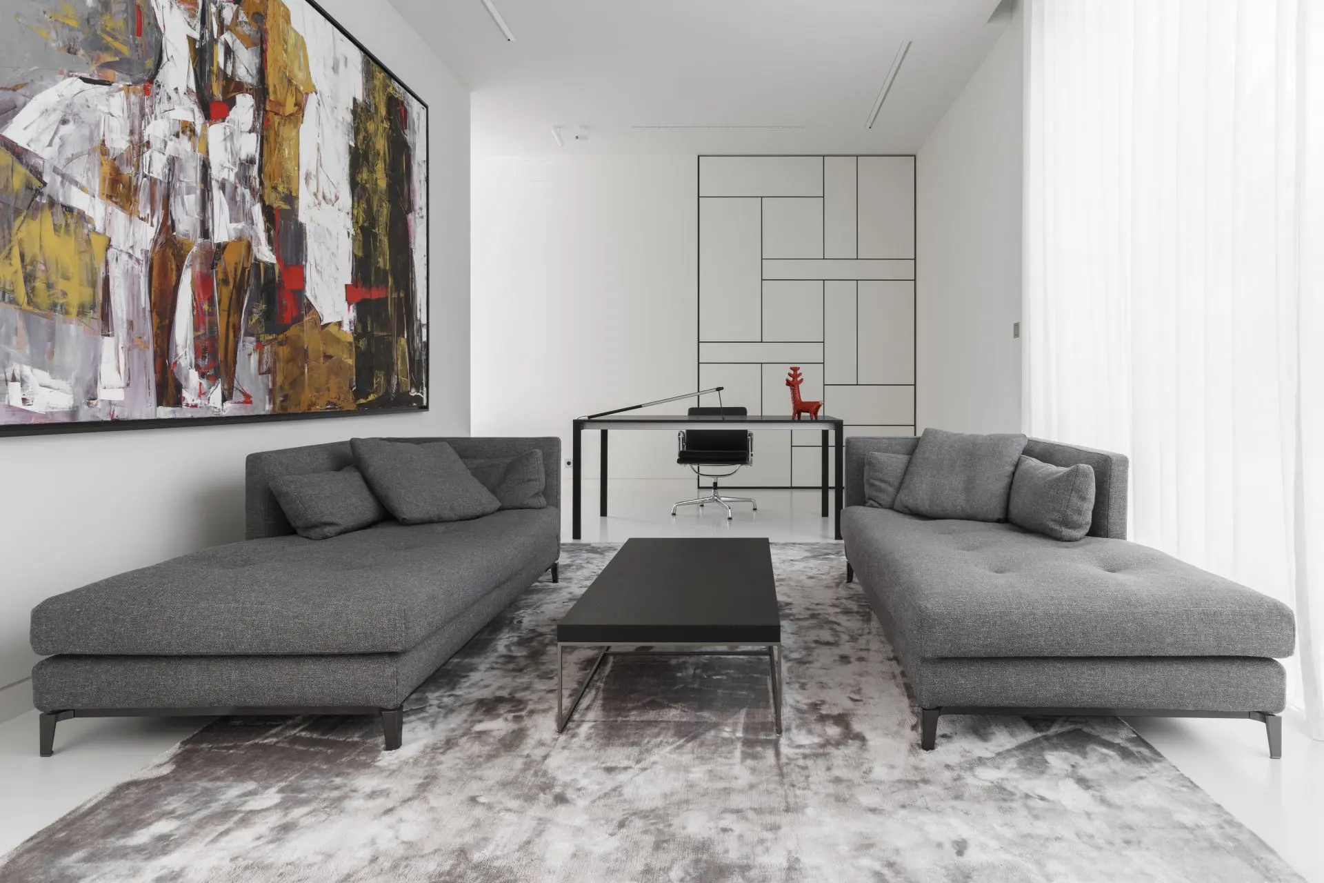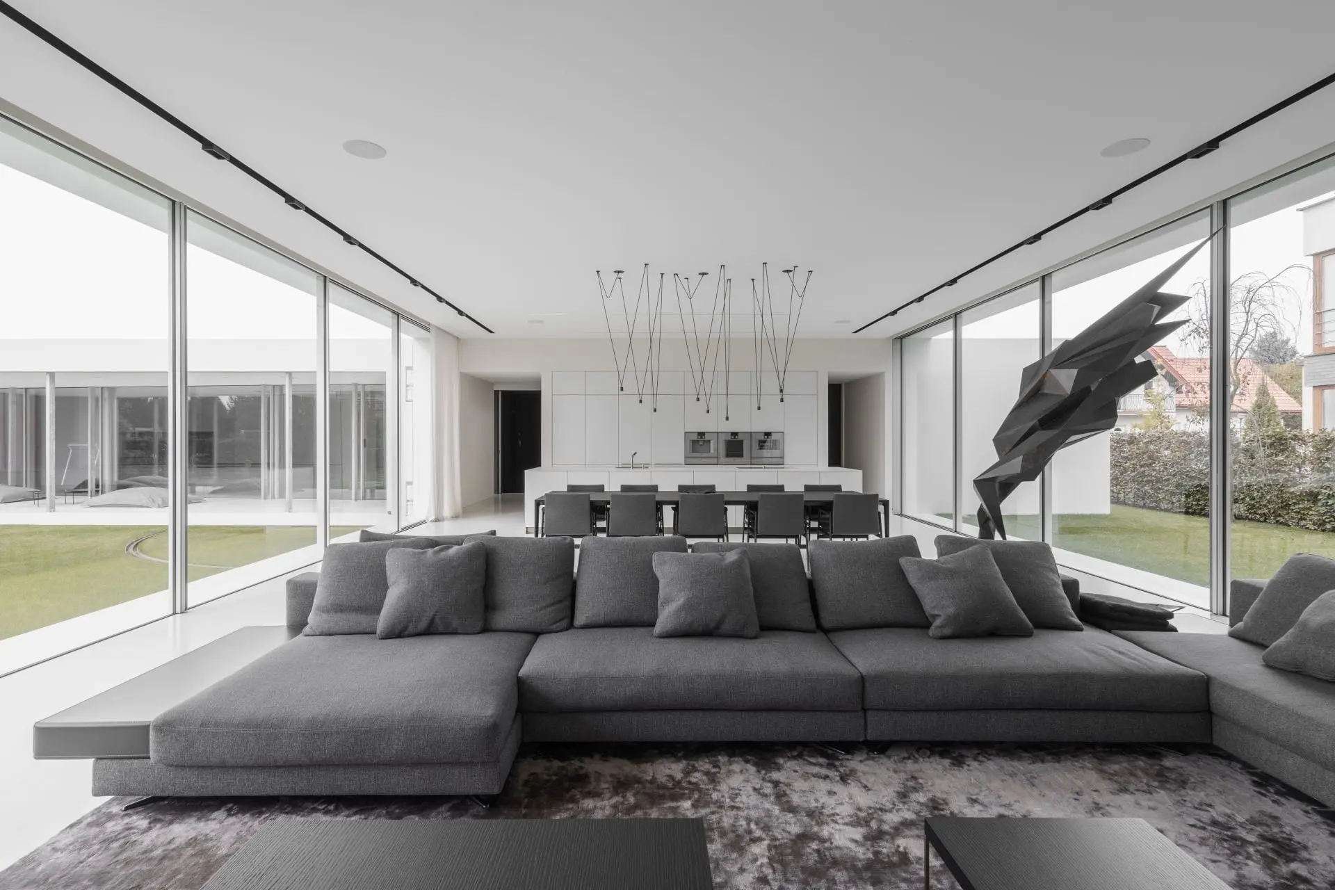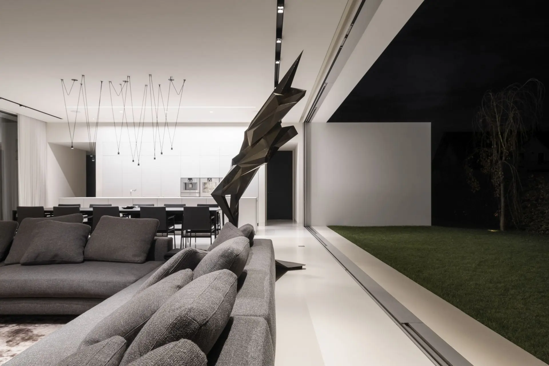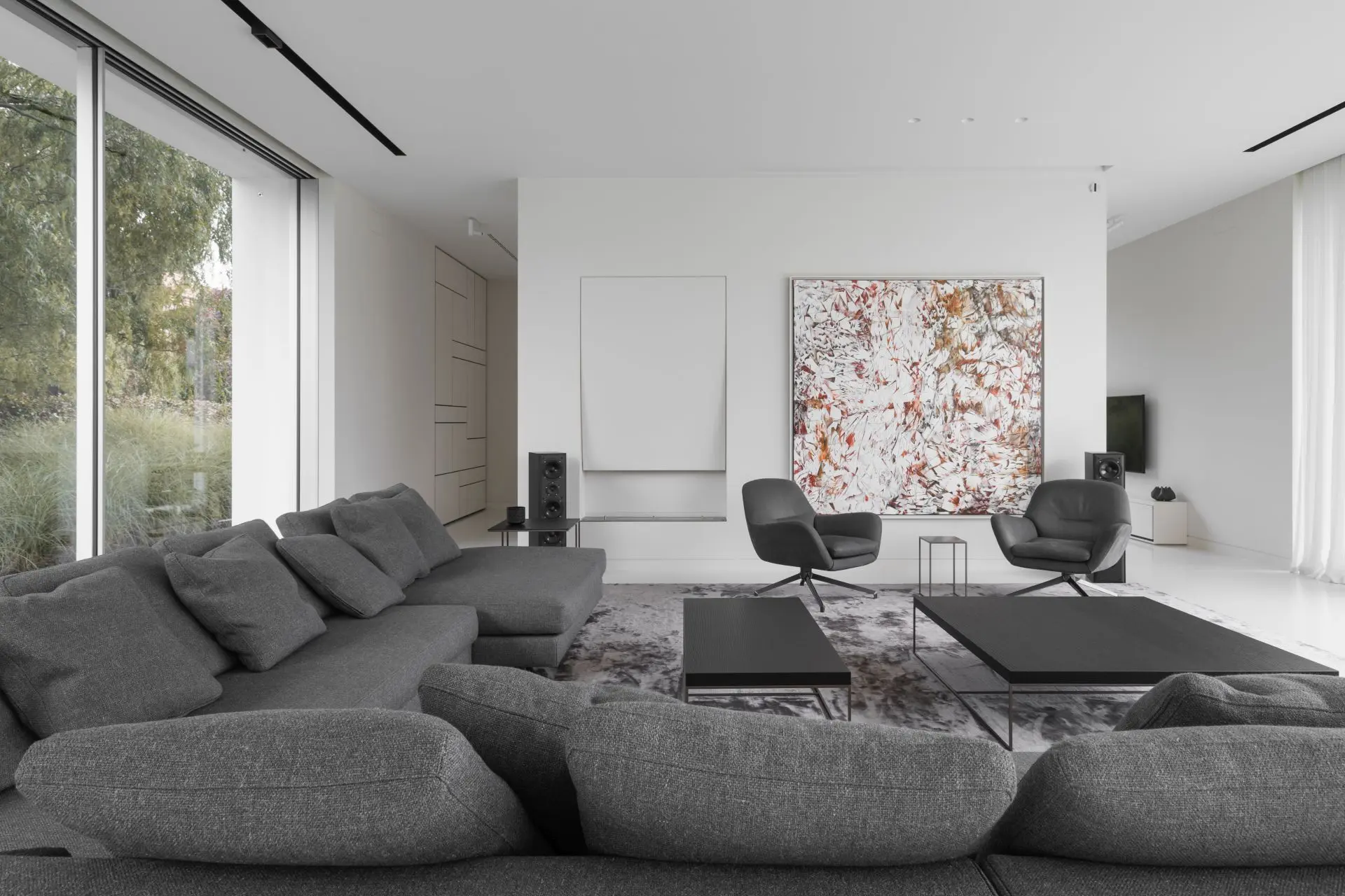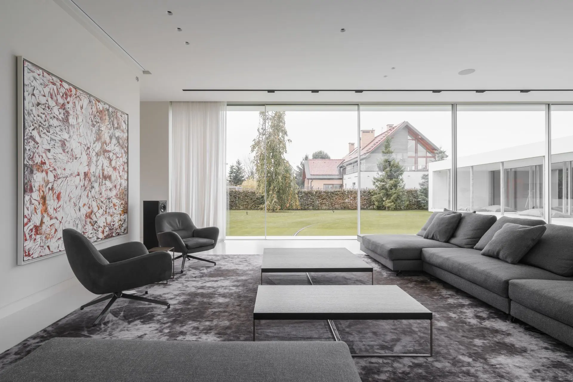 W Domu Kwadrantowym – z jego białą, minimalistyczną bryłą i gigantycznymi przeszkleniami oraz prawie monochromatycznymi, ascetycznymi wnętrzami kojarzącymi się ze współczesną przestrzenią galeryjną – zagościły wielkoformatowe obrazy poznańskiej artystki Katarzyny Zygadlewicz i rzeźby, na czele z dynamiczną kompozycją w strefie dziennej, autorstwa warszawskiego twórcy Tomasza Górnickiego. Jak doszło do tego, że zaistniała tutaj tak niespotykana synergia sztuki architektury ze sztuką architektury wnętrz oraz rzeźbą i malarstwem?