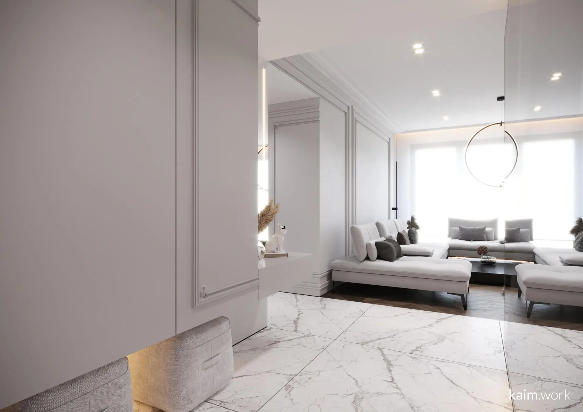 Zaprojektowane wnętrze zostało urządzone z myślą o rodzinie z dzieckiem. Młodzi małżonkowie, jednocześnie rodzice małego chłopca, chcieli by ich apartament był nie tylko elegancki, ale przede wszystkim funkcjonalny. Słowem, by sprawdził się w codziennym użytkowaniu dla rodziny z małym dzieckiem. Architekci włożyli mnóstwo energii i pracy, by efekt końcowy był zadowalający, ale to co udało im się osiągnąć zdecydowanie wykracza poza schemat poprawności. Wnętrza prezentują się doskonale, a ich funkcjonalność jest wręcz wyśmienita. W konsekwencji apartament liczący około 112 m2 powierzchni łączy ze sobą ekskluzywność miejsca w którym został zlokalizowany, a jednocześnie jest on idealnie dostosowany do wymogów młodych osób nowoczesnych i idących z duchem czasu.