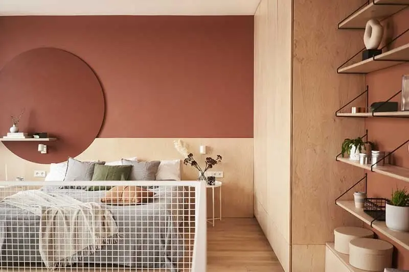 Założeniem projektu było stworzenie swojego rodzaju idylli, dającej wytchnienie w pędzącej codzienności. Pomimo, iż lokale są przeznaczone dla osób, które lubią tępo miasta i chcą spędzać czas w samym jego centrum, architektki ze Studio Kontent zaproponowały aranżację otulającą ciepłem i sprzyjającą relaksowi. Wnętrze apartamentu odwołuje się do odczuć, jakie wywołuje obcowanie z przyrodą: spokoju, wyciszenia i odprężenia. Dlatego też dominuje tutaj drewno oraz przyjemne barwy, inspirowane kolorami znanymi z naturalnych krajobrazów. Elementy te pozwoliły na wykreowanie mikroświata, uwodzącego ciepłymi odcieniami terakoty. Dominującym materiałem jest drewno w chłodnym wybarwieniu, dzięki któremu przestrzeń jest wyjątkowo przytulna. Natomiast wprowadzenie do aranżacji bieli nadało jej lekkości, a akcenty w postaci zgaszonej zieleni przywodzą na myśl naturalną roślinność i pięknie komponują się ze spektrum pomarańczu.
