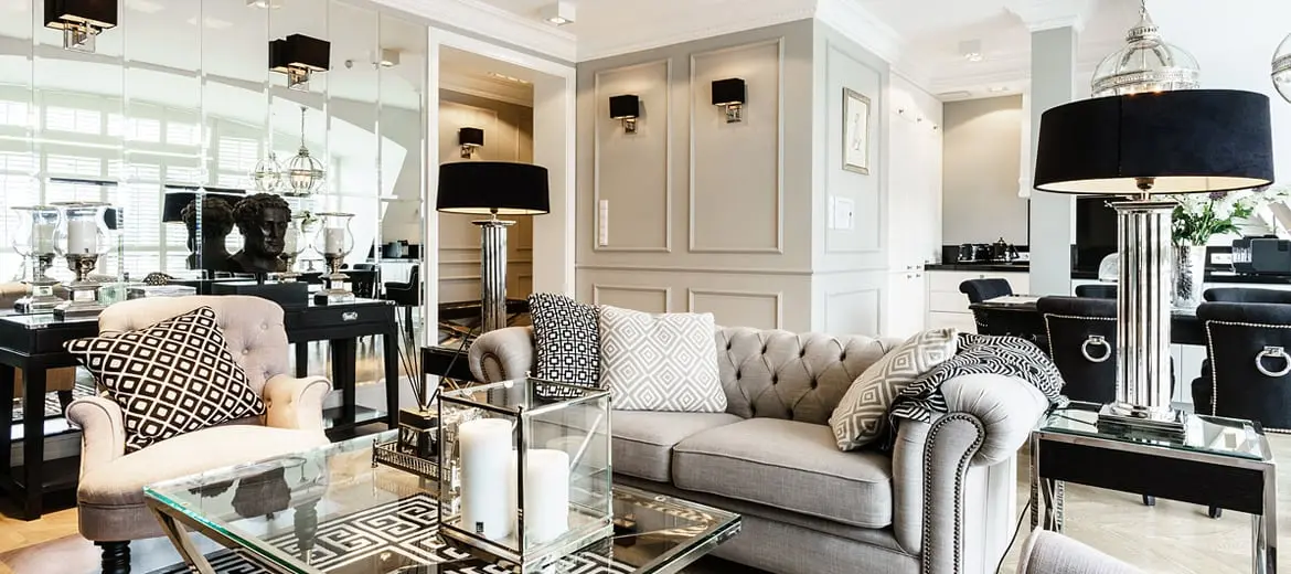 Niezwykle elegancki apartament na pograniczu stylu klasycyzującego i glamour.