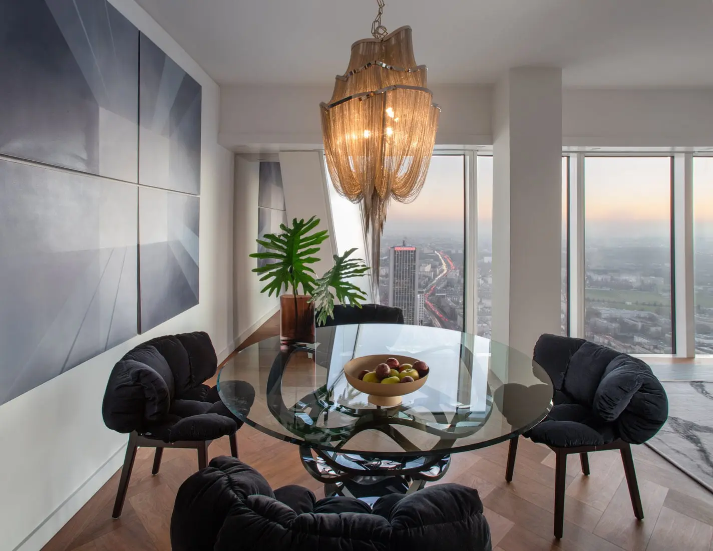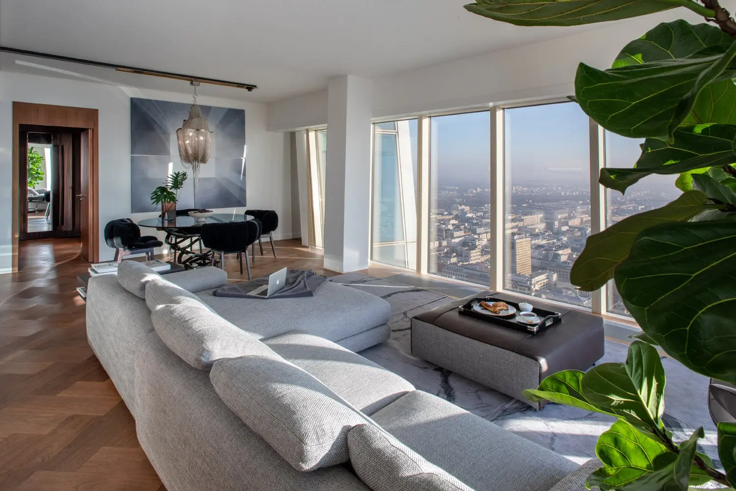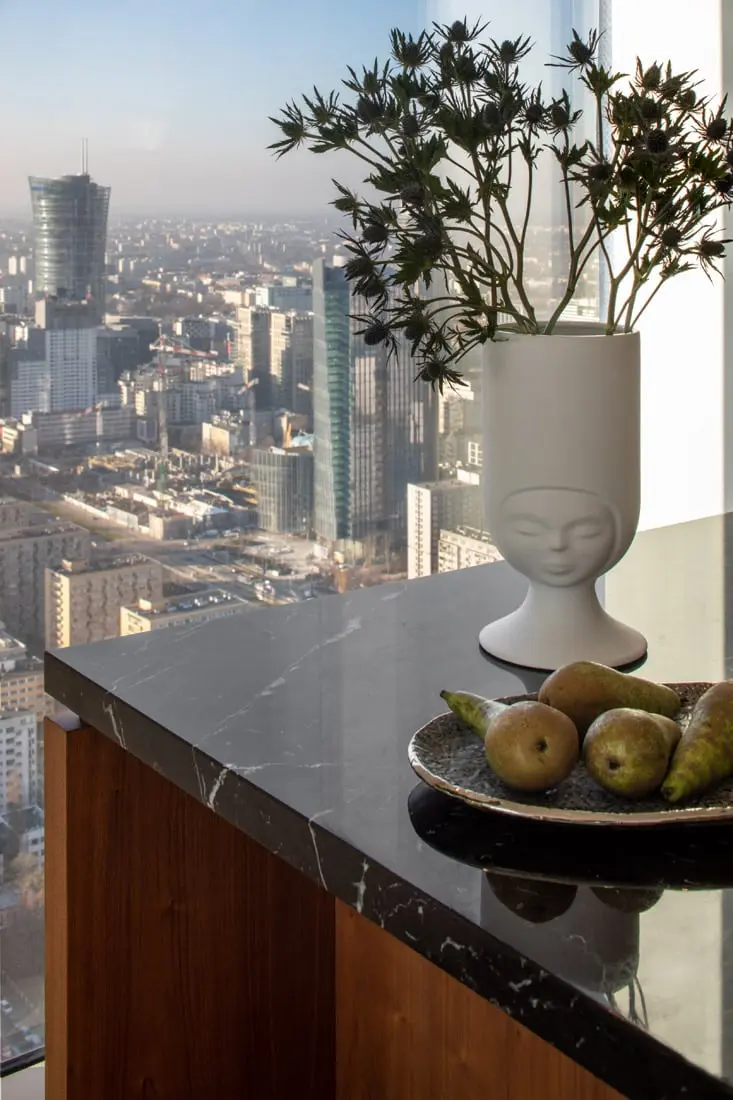 Położony na 50. piętrze wieżowca Złota 44 apartament, powstał z myślą o potrzebach inwestorów kochających podróże i dynamiczny styl życia. Projekt powierzono architekt Annie Koszeli. Przestrzeń miała być odważna i nieoczywista, korespondować z widokiem na Warszawę, a nie dominować nad nim. Architektka stworzyła miejsce, w którym można odpocząć po intensywnym dniu, jednocześnie wciąż czując rytm miasta.