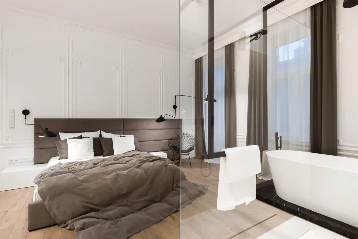O takim apartamencie do zaprojektowania marzy chyba każdy architekt wnętrz – wysokie sufity, jasne pokoje i przede wszystkim sami właściciele mieszkania, którzy wykazali się niezwykłą odwagą. To między innymi ona przyczyniła się do powstania bardzo nowatorskiego projektu. Jak zdradzają architekci z Nasciturus design ,,nie każdy klient zgadza się na ekstrawagancję, jaką bez wątpienia jest posiadanie w sypialni przeszklonej kabiny prysznicowej i wanny”. Na szczęście znaleźli się śmiałkowie, a teraz my możemy podziwiać tę realizację! Zapraszam do środka!