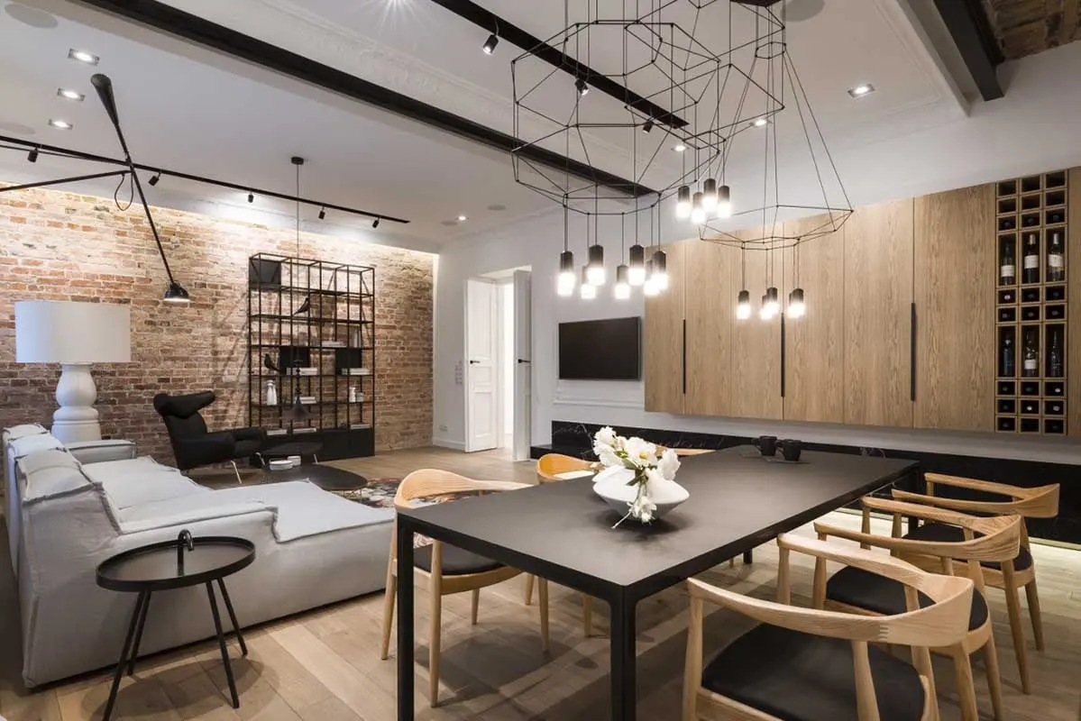Ten projekt jest przykładem udanej aranżacji wnętrza w nowoczesnym stylu, ale przy zachowaniu (i wyeksponowaniu) klimatu zabytkowej kamienicy. Takim elementem jest na przykład efektowna cegła, którą wystarczyło tylko odsłonić.