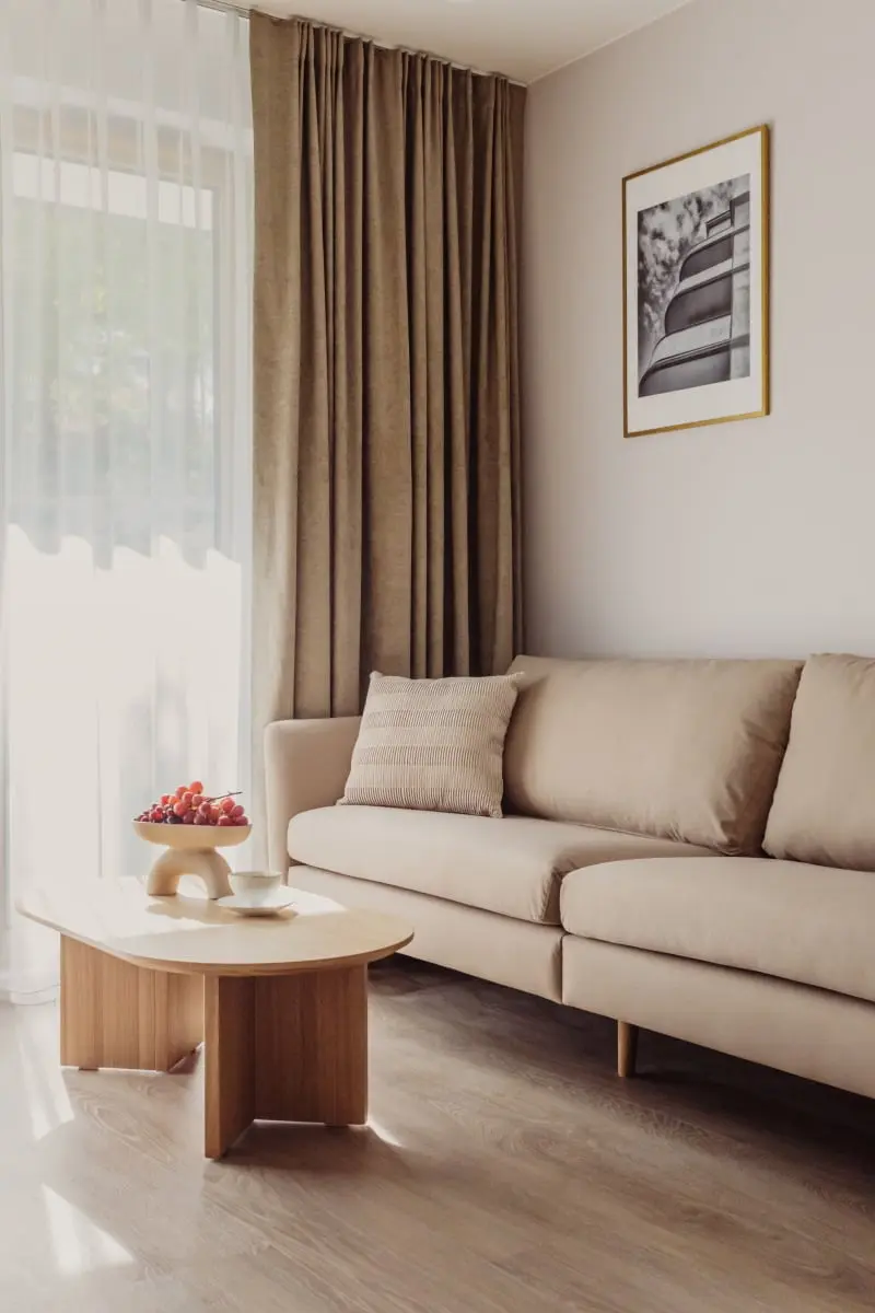 Projekt „Green Hill” celowo odnosi się do estetyki modernizmu, ściśle związanego z historią Gdyni. Głównym zamierzeniem tej koncepcji jest podkreślenie jasności i przyjemności przestrzeni, a także harmonijnego zespolenia ich z atmosferą nadmorskiego wypoczynku. W ramach projektu wykorzystano subtelne tekstury drewna, organiczne kształty oraz panoramiczne widoki morza. Co więcej, nie zapomniano o potrzebach osób z niepełnosprawnościami, projektując apartament dostosowany do ich wymogów, co gwarantuje wygodę i funkcjonalność dla wszystkich przyszłych mieszkańców.
