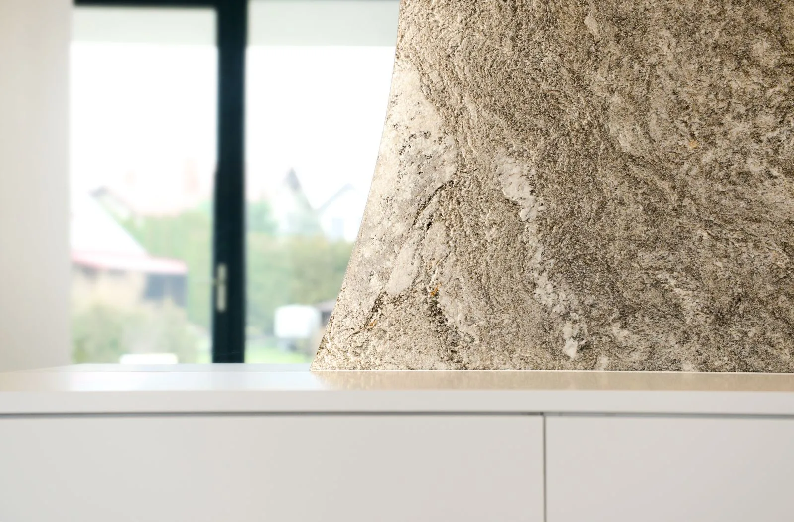 Wnętrze opowiada historię poprzez swoją materię – surowa, teksturowana ściana o kamiennej fakturze kontrastuje z niemal eteryczną bielą gładkich powierzchni. To zestawienie tworzy dynamiczny dialog między trwałością a lekkością, brutalizmem a wyrafinowaną czystością. Każdy element pełni tu swoją rolę – nie ma przypadków, są jedynie starannie przemyślane decyzje projektowe.