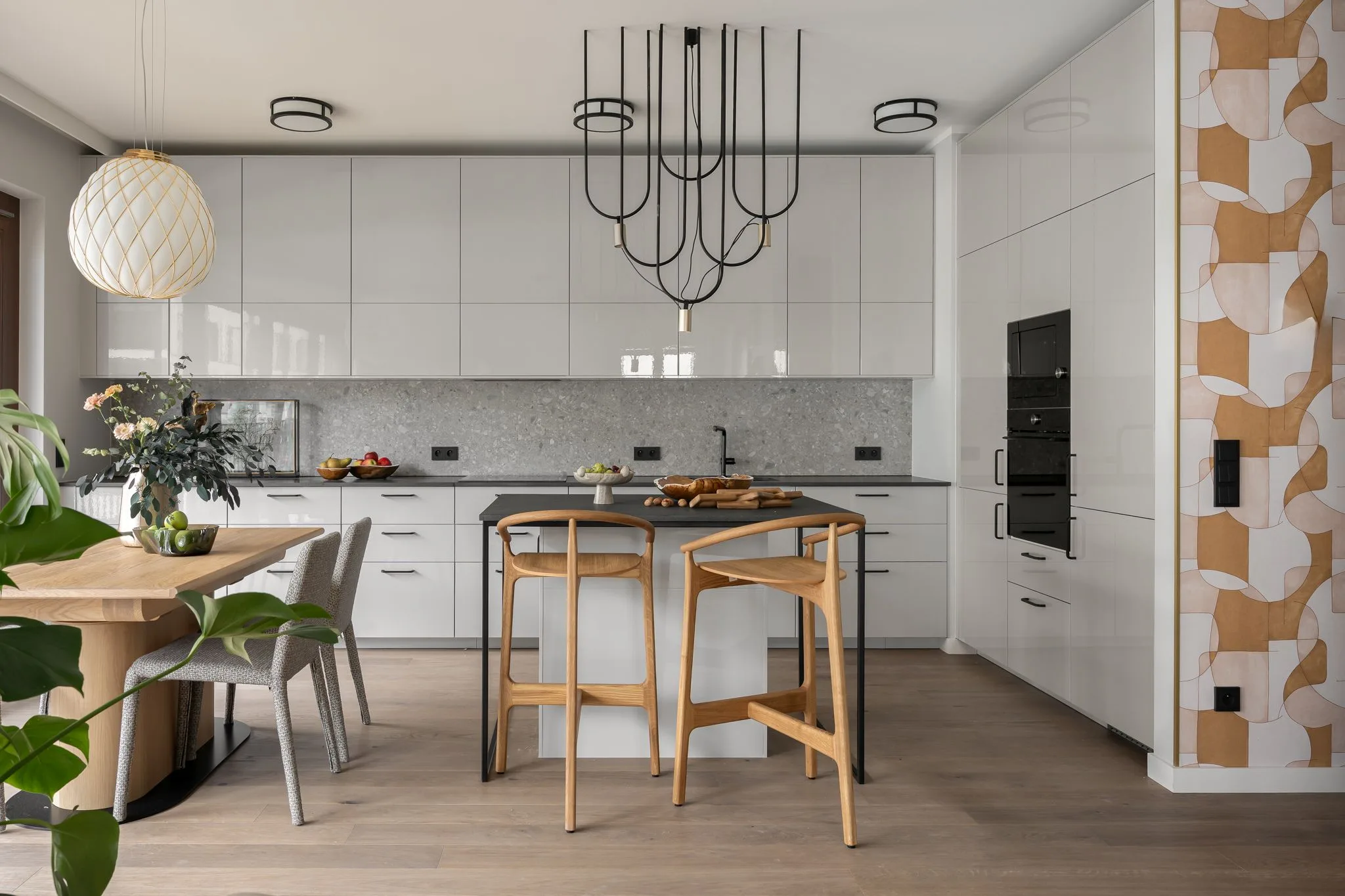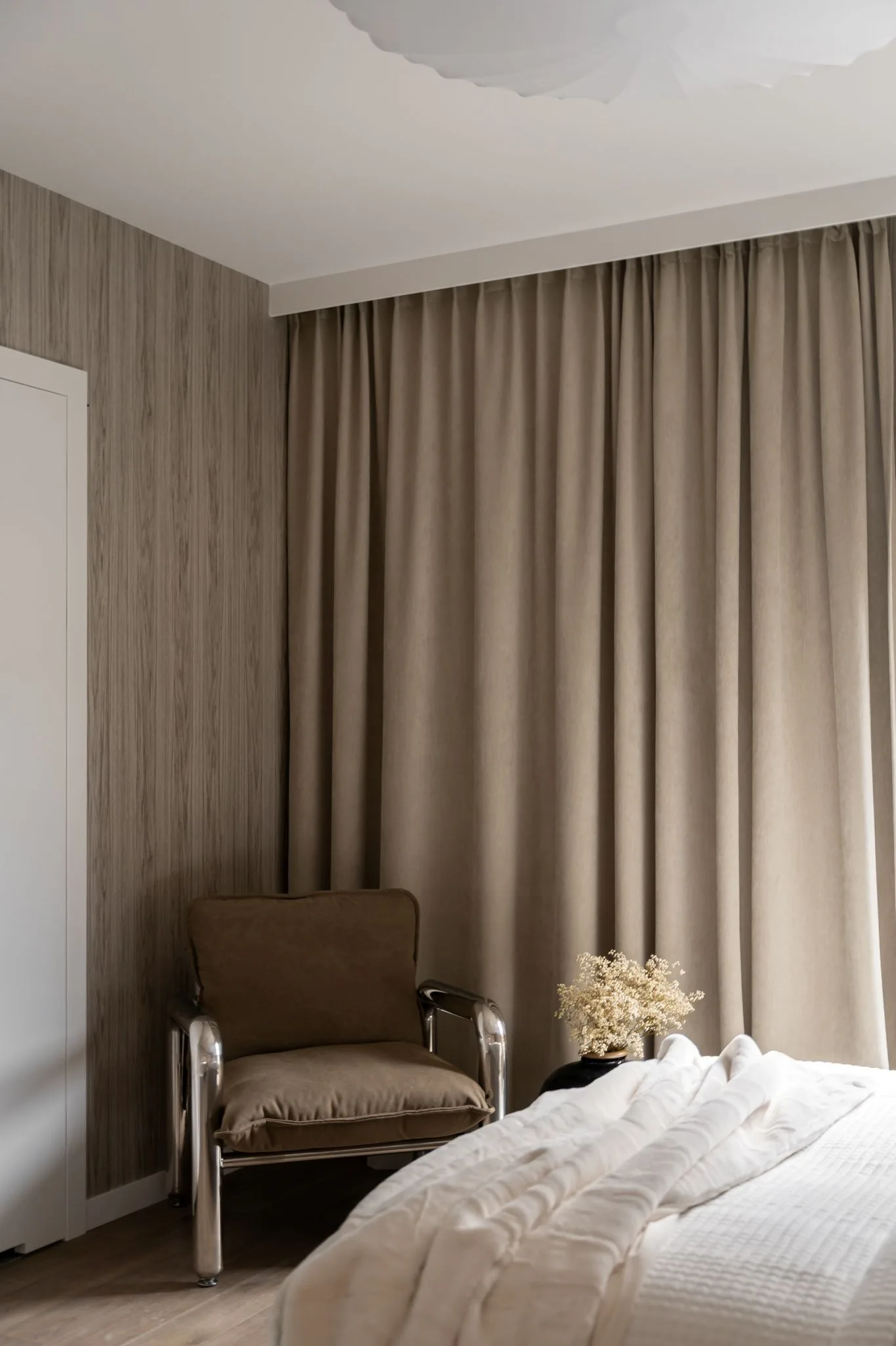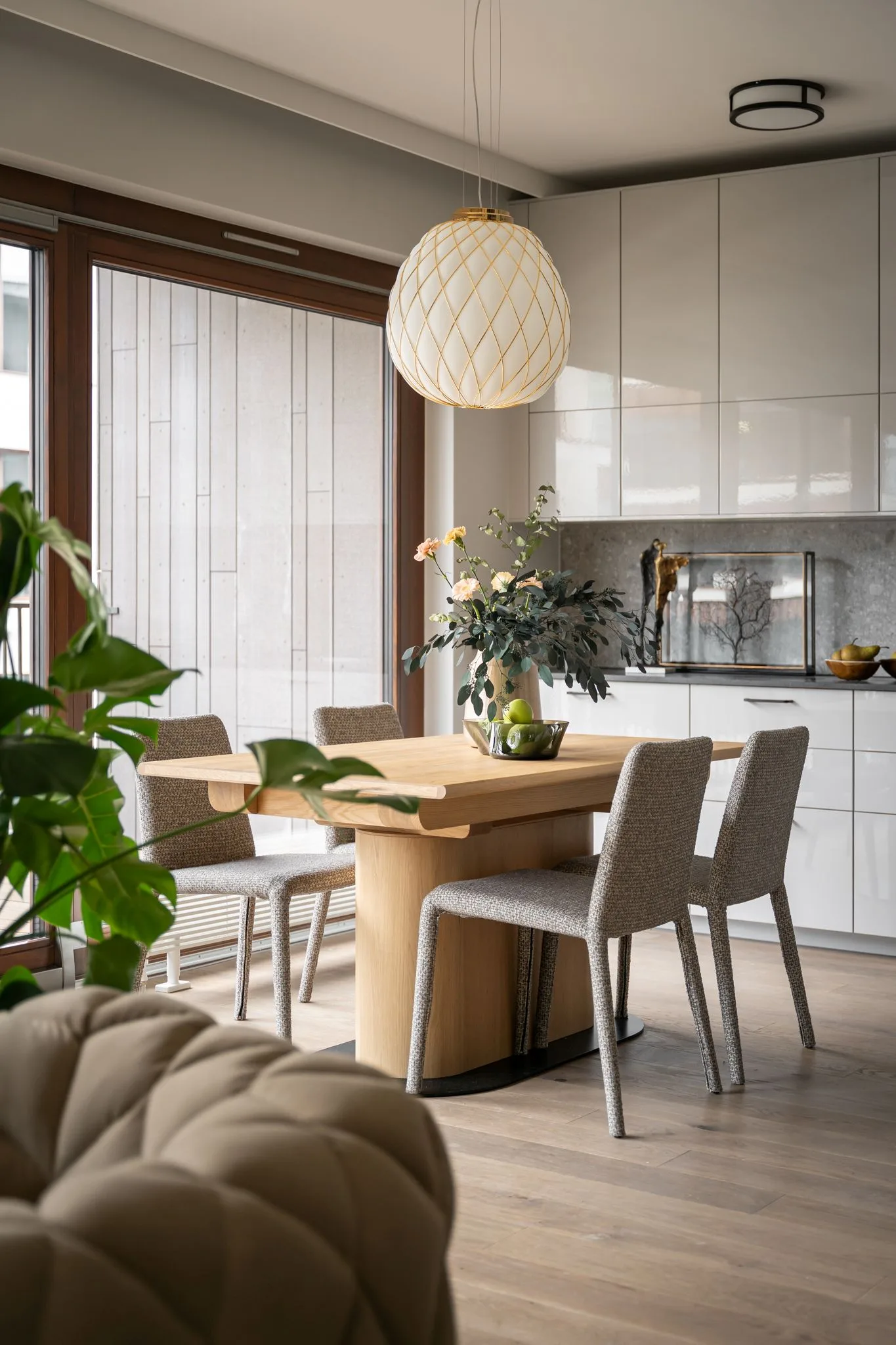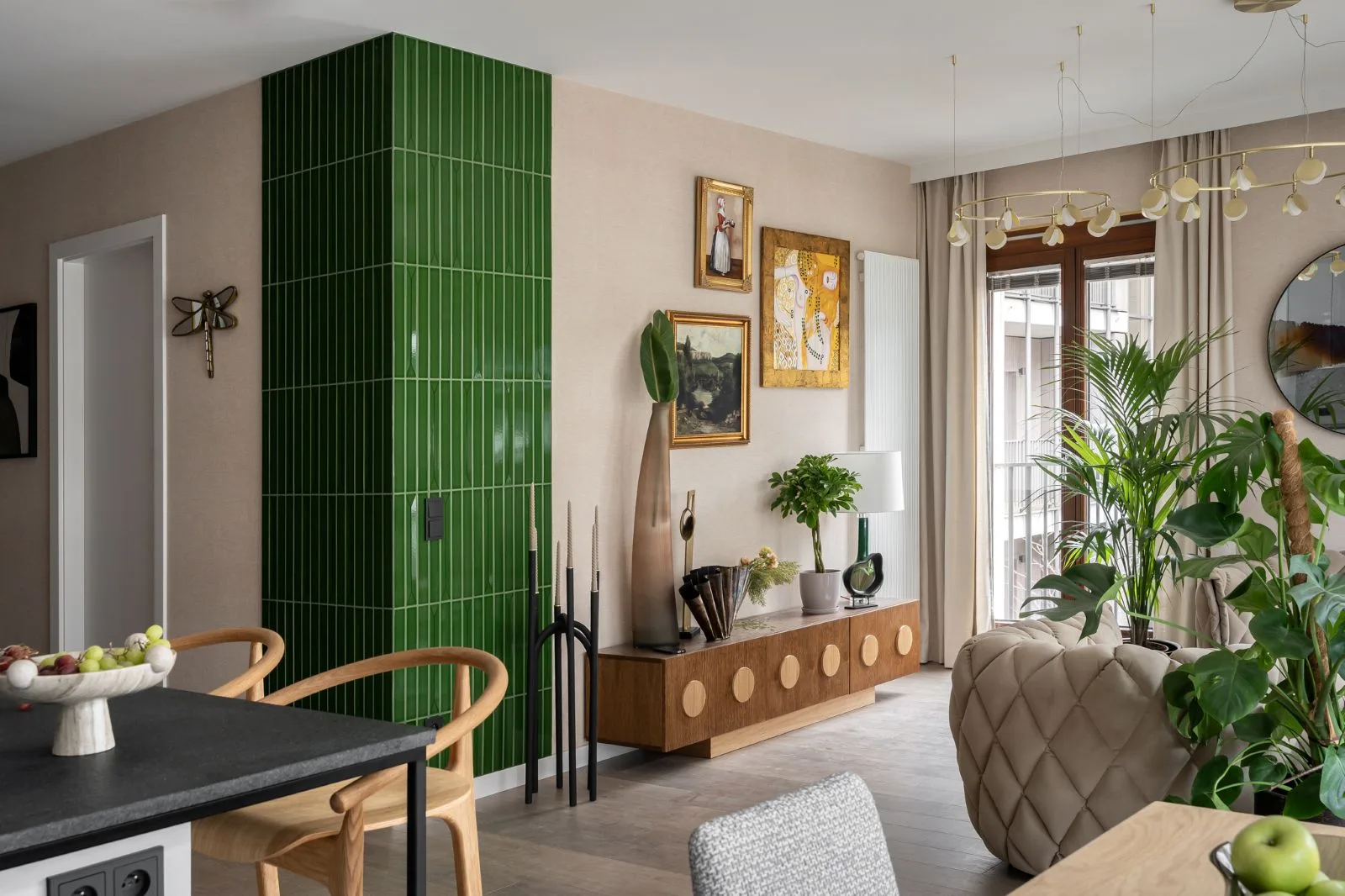 To wnętrze wyczulone na dotyk i światło. Każdy materiał ma swoją temperaturę, swoją opowieść. Drewno, tkaniny, szkło, metal – wszystko tu gra w jednej orkiestrze, bez dysonansów.