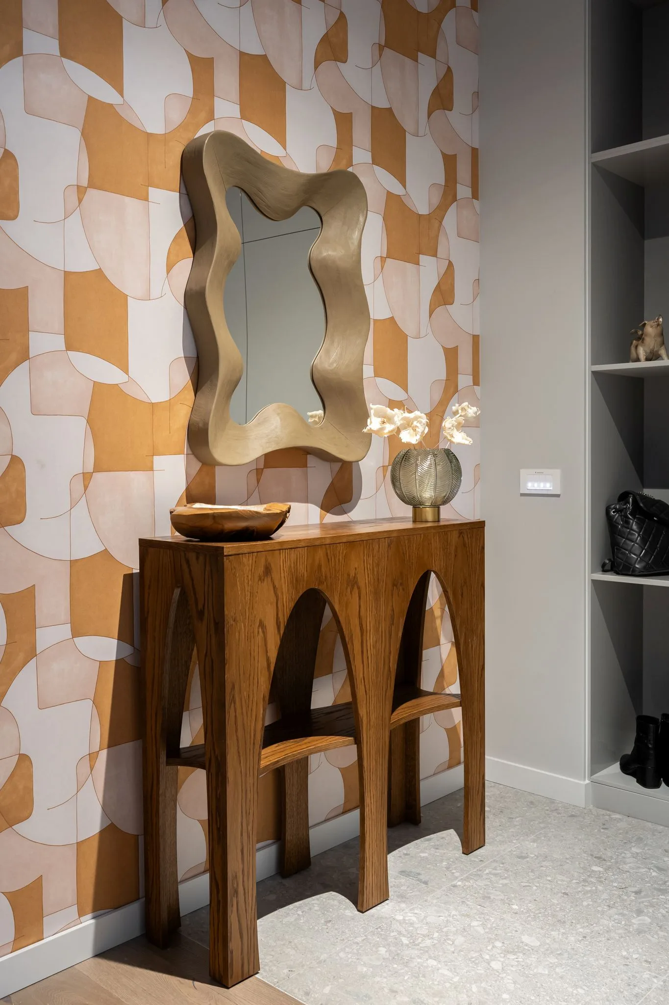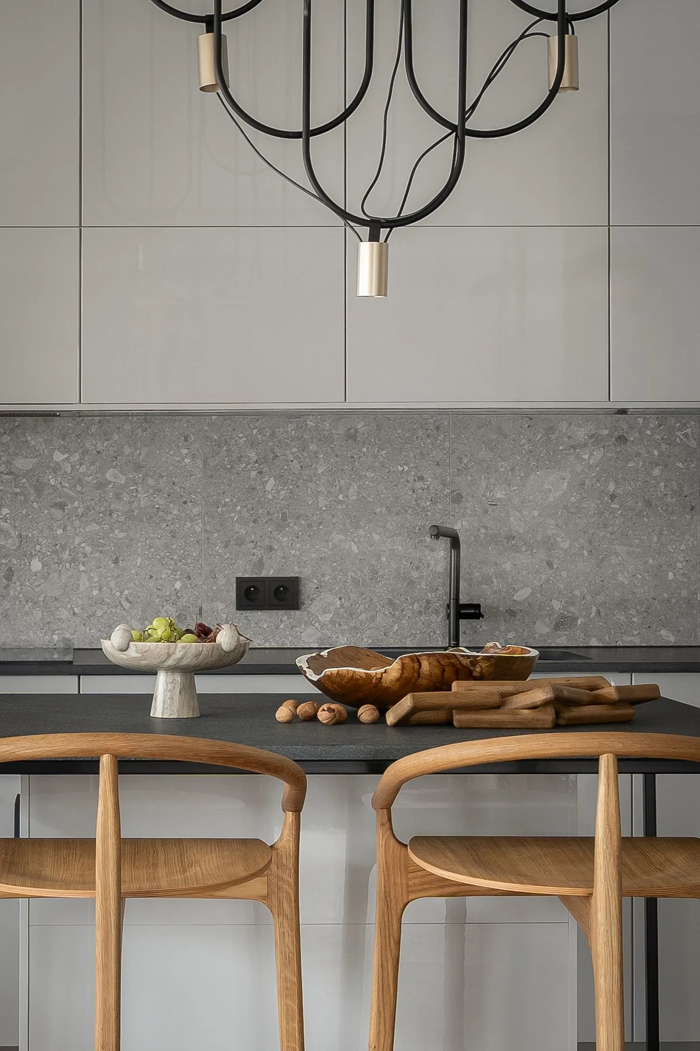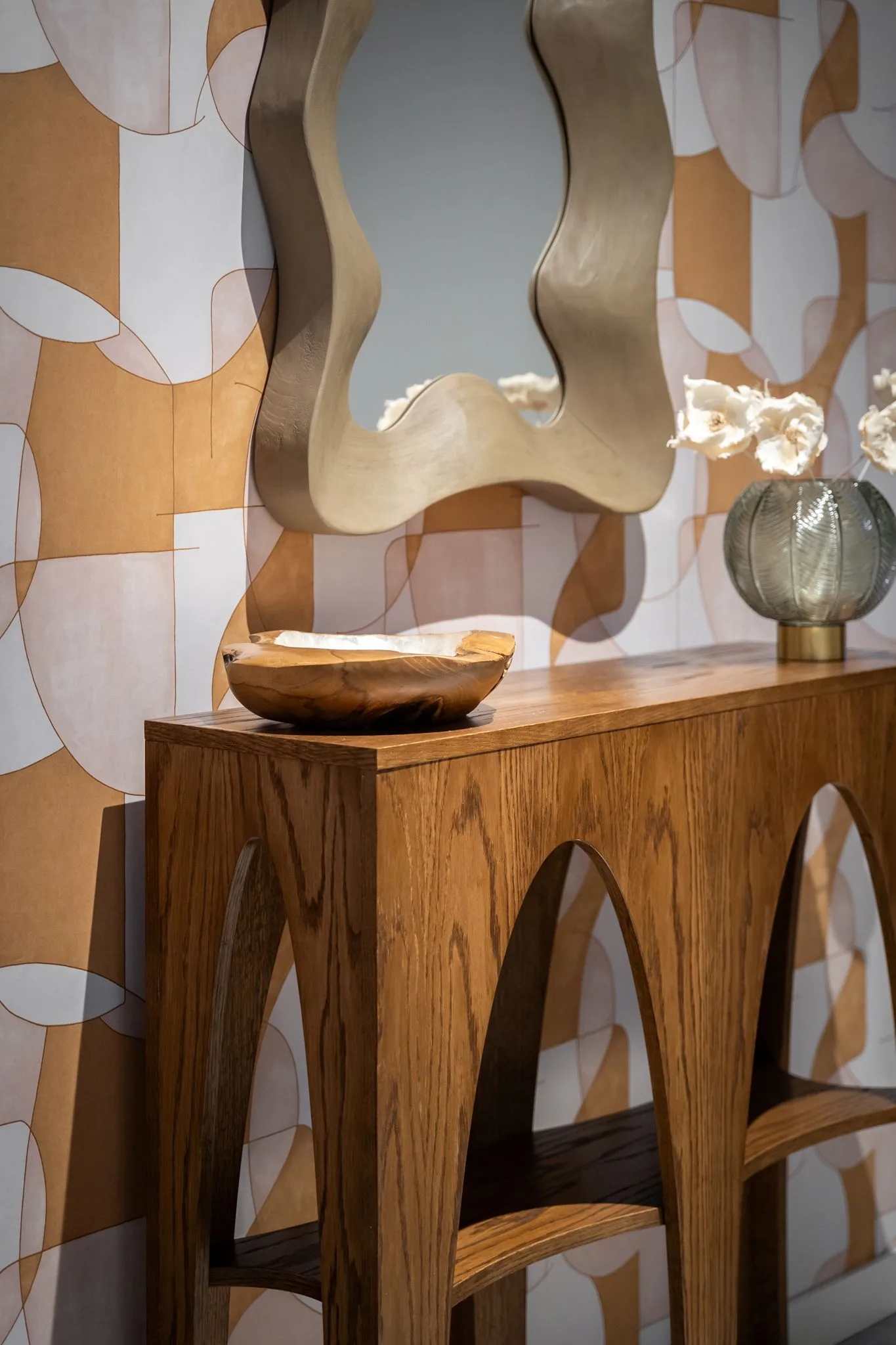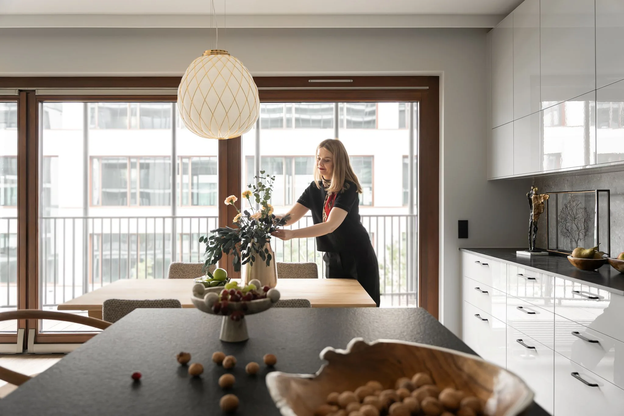 To wnętrze wyczulone na dotyk i światło. Każdy materiał ma swoją temperaturę, swoją opowieść. Drewno, tkaniny, szkło, metal – wszystko tu gra w jednej orkiestrze, bez dysonansów.