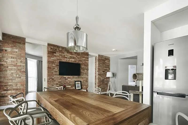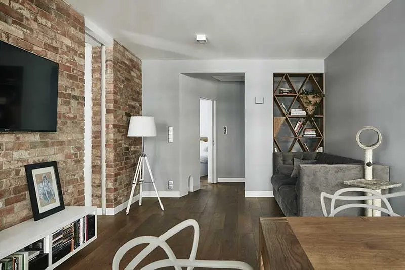 Mieszkanie w stylu skandynawskim ocieplone cegłą z rozebranego, mazurskiego domu.