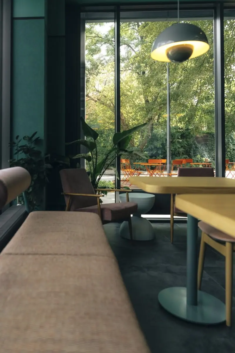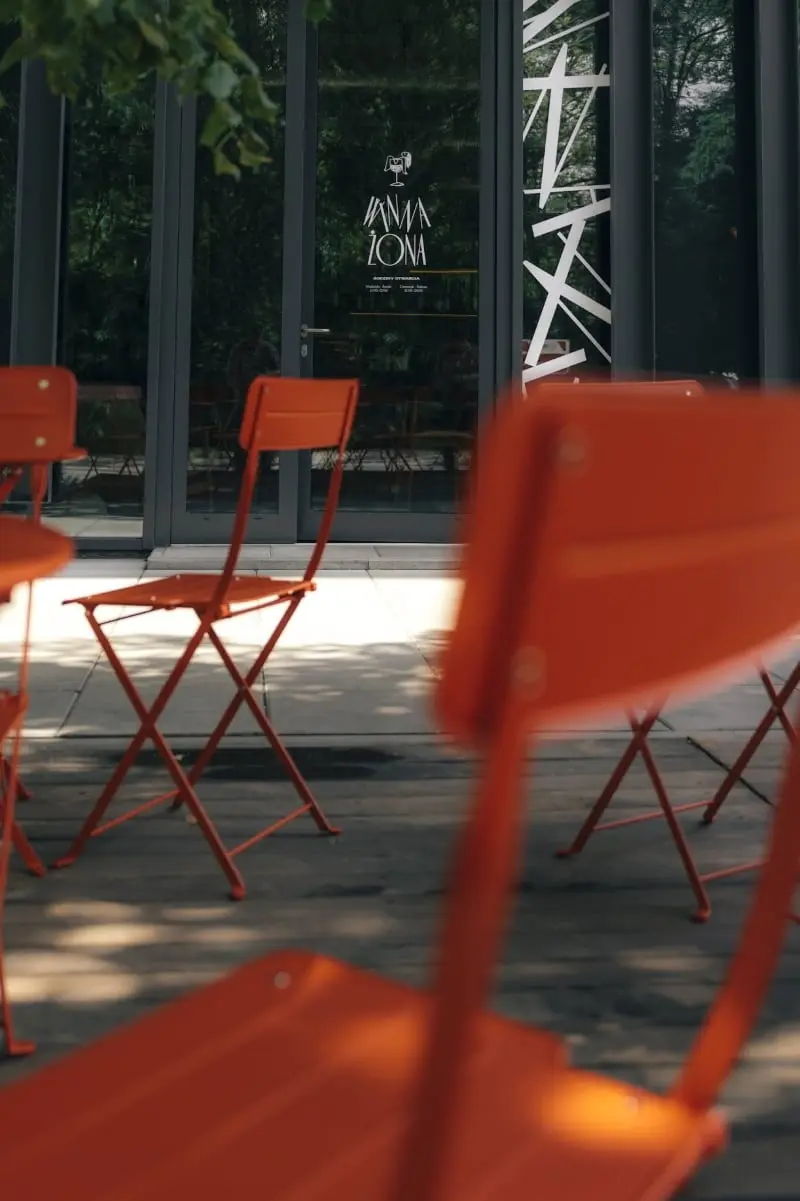 Wnętrze, poza kolorem, zachwyca przemyślaną aranżacją. Punktem centralnym jest ogromna, miękka kanapa, której ażurowa konstrukcja została zaprojektowana, tak by nie zasłaniać głównej witryny. To tu, na kanapie, można cieszyć się wybornym winem i towarzystwem. Stojak z winami, usytuowany przy oknach, ma nie tylko dostęp do lokalu, ale także przyciąga wzrok przechodniów, zachęcając ich do odkrycia tego wyjątkowego miejsca. Całość podkreślają ciepłe, delikatne oświetlenie i starannie przemyślana aranżacja, sprawiając, że ten niewielki, 40-metrowy lokal staje się jednym z najbardziej gorących adresów na Pradze. Winna Żona to to przestrzeń, która zachwyca nie tylko smakami, ale także wyjątkowym wnętrzem.