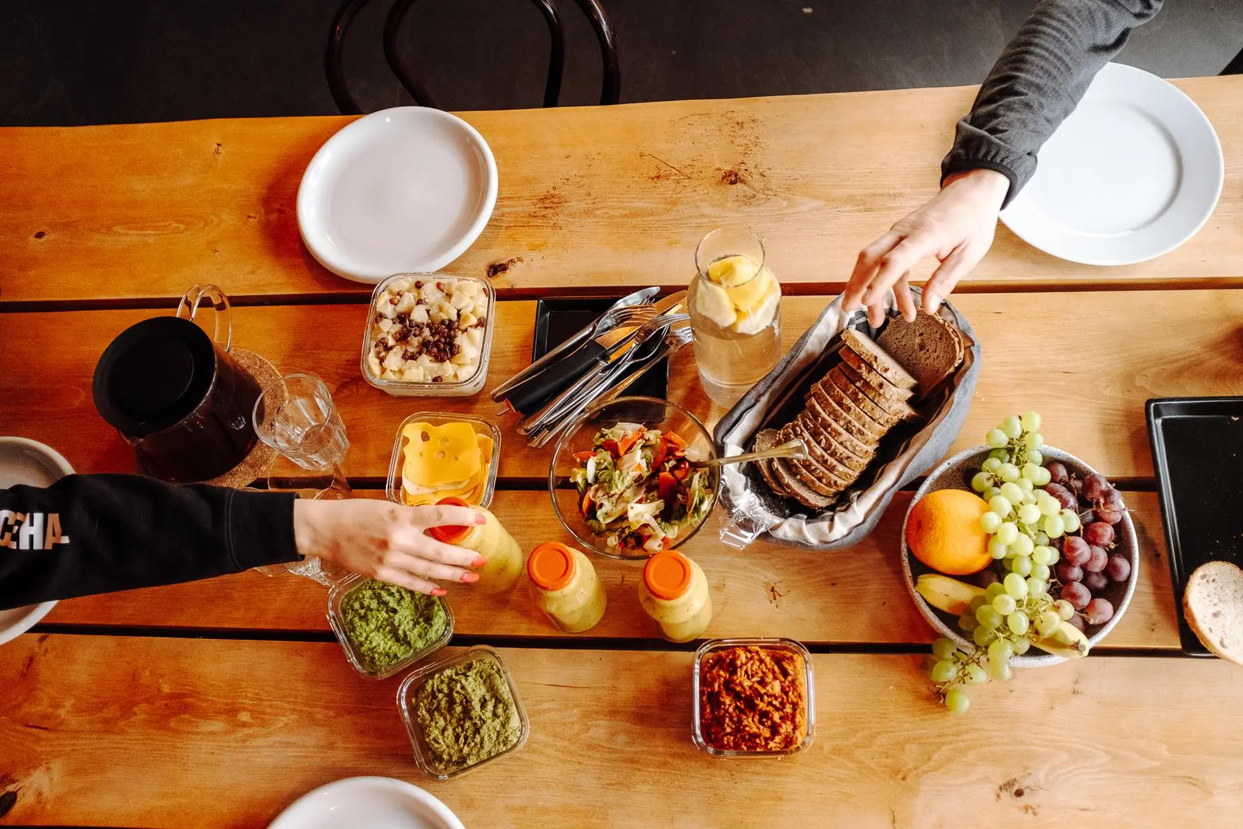 A ile osób znajdzie tu miejsce dla siebie? Chata liczy pięć wygodnych apartamentów. Każdy posiada własną łazienkę. Do dyspozycji gości jest także przestrzeń wspólna z dużym stołem jadalnianym w ganku. Właściciele dają możliwość wynajęcia całego domu lub pojedynczych apartamentów. Korzystając z uroków okolicy, można zatracić się w śniadaniu dostarczonym pod same drzwi. W koszach znajdzie się wiele lokalnych przysmaków! DAJ SPOKÓJ to też świetne miejsce na pracę w ciszy. W każdym apartamencie jest wygodne miejsce do pracy, można też śmiało zająć przestrzeń przy dużym stole w jadalni.