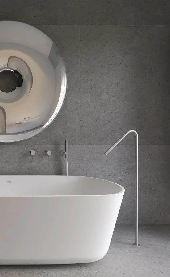 Minimalistyczna jasna przestrzeń, w kórej znajduję się kuchnia z jadalnią otwartą na salon.