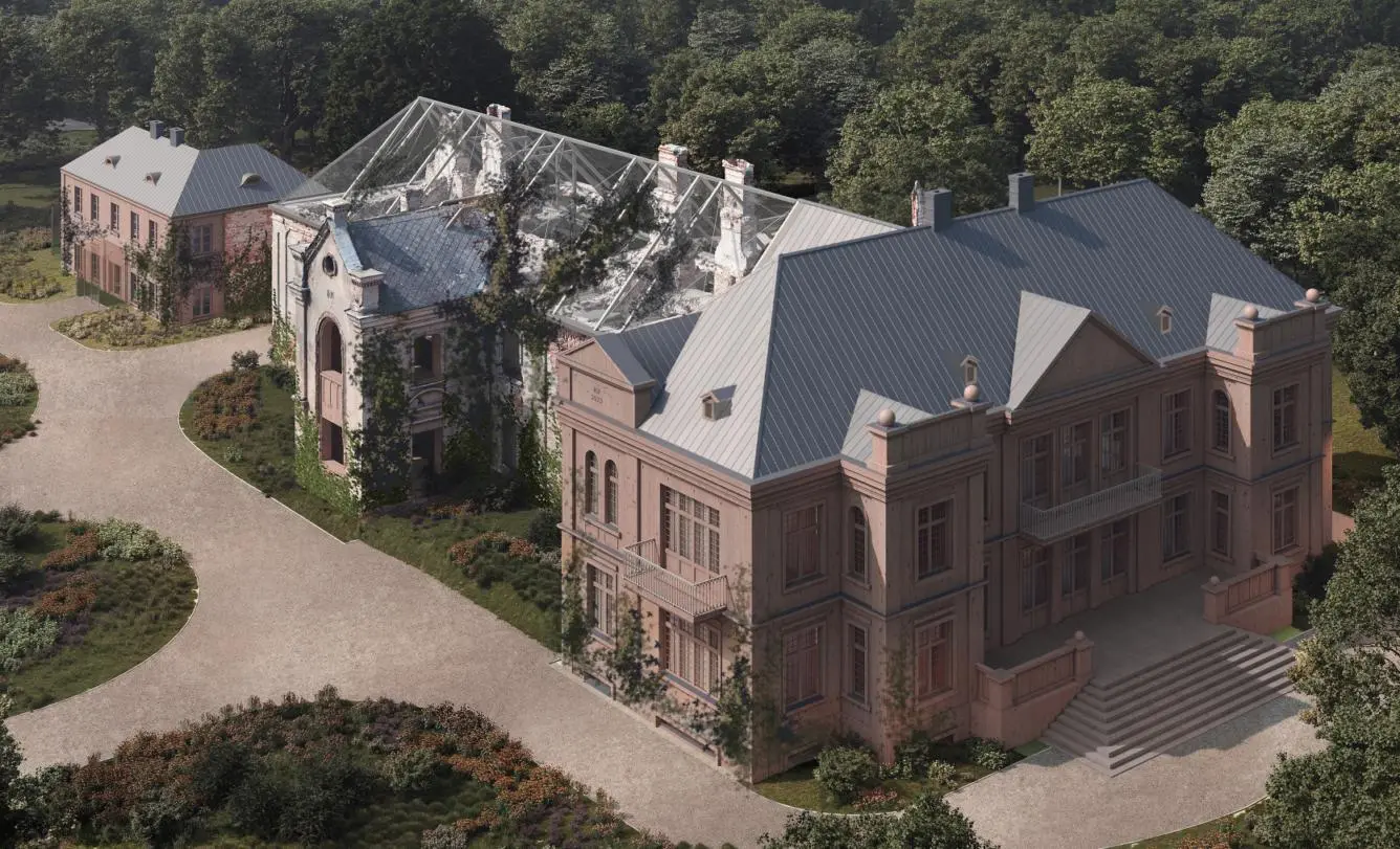 – Każdy projekt, każdy proces rewitalizacji zabytku jest unikatowym tworem, możemy więc pozwolić sobie na tak indywidualne podejście. Istotne było dla mnie także to, jak obiekt będzie zachowywał się w czasie. Modrzewiowy pałac w pierwszym roku złocistobursztynowy, zacznie powoli szarzeć, pokrywać się naturalną patyną – opowiada architekt. – Zakonserwowane ruiny zostaną zachowane w oryginalnym stanie, z widoczną cegłą, pozostałościami szarego tynku cementowo-wapiennego i porastającą je roślinnością, która w biegiem lat jeszcze się rozkrzewi. Wszystko się ze sobą połączy i stopi w całość – stwierdza Aleksander Jankowski.