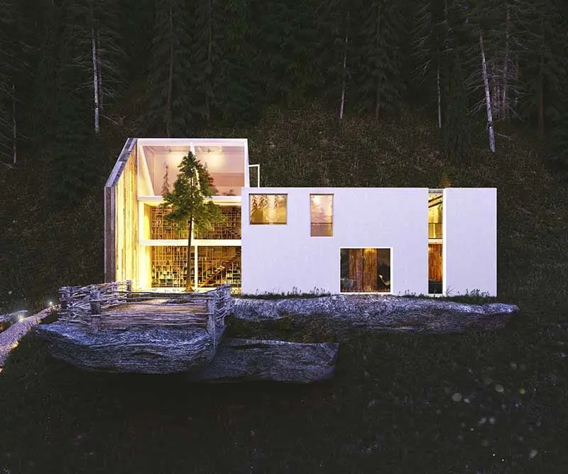 Głównym założeniem było stworzenie domu o prostej i funkcjonalnej formie, która w mało inwazyjny sposób wpisuje się w krajobraz. Część dachu przeznaczoną na zielony taras ukształtowano w taki sposób, aby razem ze zboczem wzniesienia tworzyły jeden spójny poziom. Takie formowanie zielonego dachu wraz ze znacznymi przeszkleniami zapewniają wzajemne przenikanie się wnętrza i zewnętrza oraz gwarantują bliski kontakt mieszkańców z naturą.