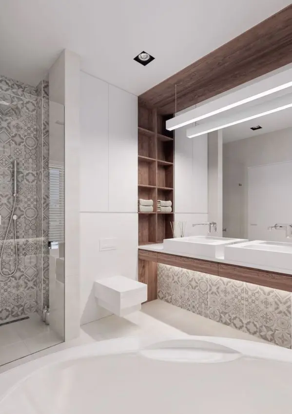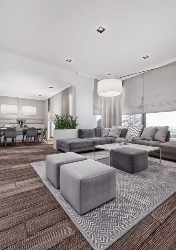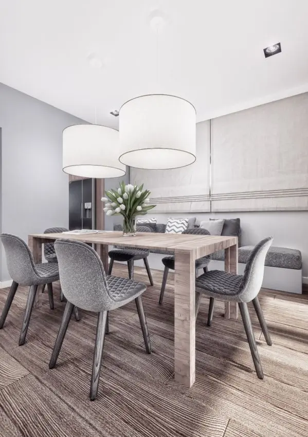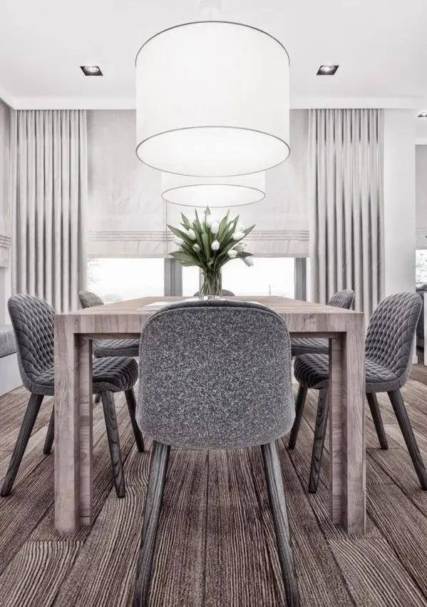 „Projekt aranżacji wnętrza domu jednorodzinnego zlokalizowanego pod Łodzią. Jasna, stonowana kolorystyka, prosta w formie zabudowa meblowa pozwoliła na opracowanie nowoczesnego i ciepłego wnętrza. Klasyczny, drewniany stół jadalniany w połączeniu z eleganckimi, tapicerowanymi krzesłami podkreślił wyjątkowy dla domowników charakter jadalni.”