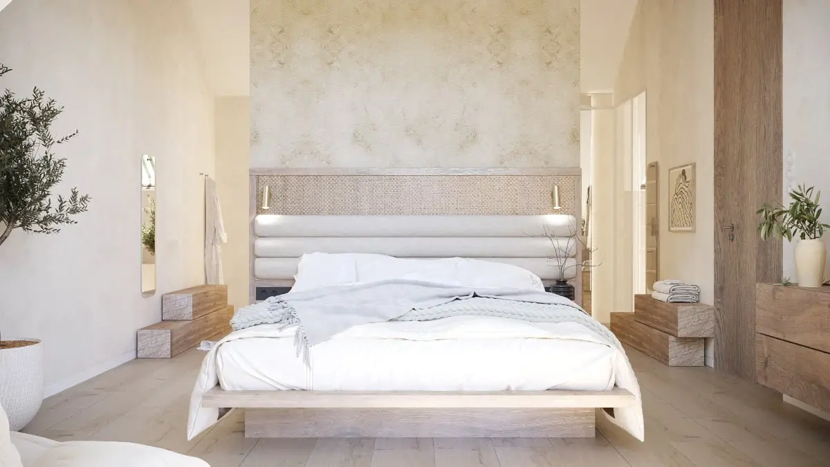 Dzika natura otaczająca kompleks, przeniknęła do wnętrz domu. Materiały zaproponowane przez architektki to gliniane tynki, ciepłe, surowe drewno, kamień, rattan oraz trawa morska. Kontekst miejsca i upodobania Inwestorów, a także ich nowoczesne spojrzenie na architekturę pozwoliły stworzyć minimalistyczną przestrzeń w duchu boho. Nie mogło tutaj zabraknąć pracowni ceramiki, której tworzenie jest wielką pasją Pani Domu. Dzięki odpowiedniemu pomieszczeniu może ją wytwarzać, jak i dzielić się tajnikami rękodzieła z gośćmi glampingowego kompleksu.