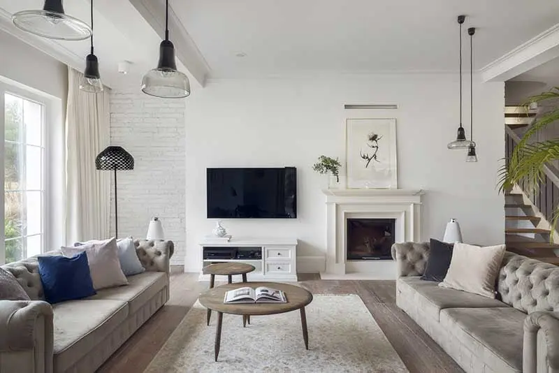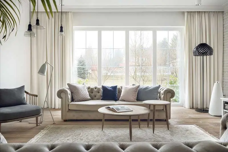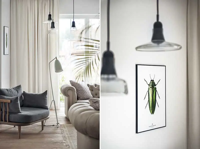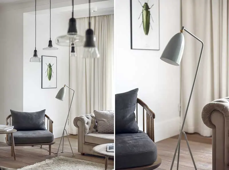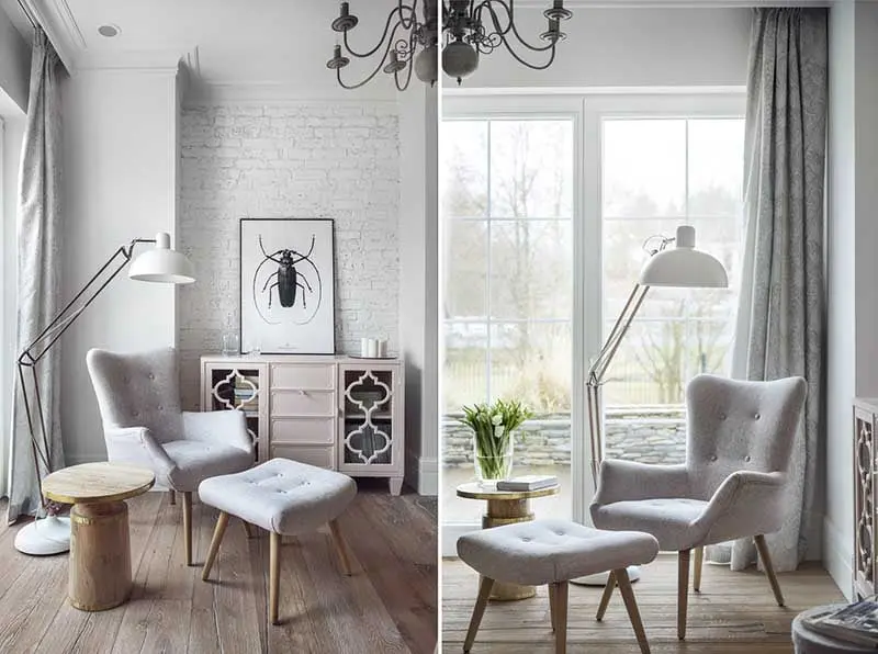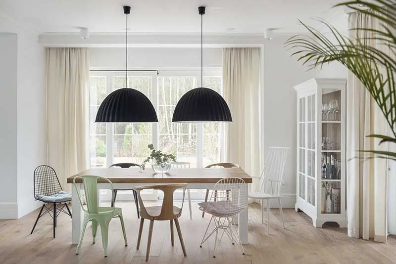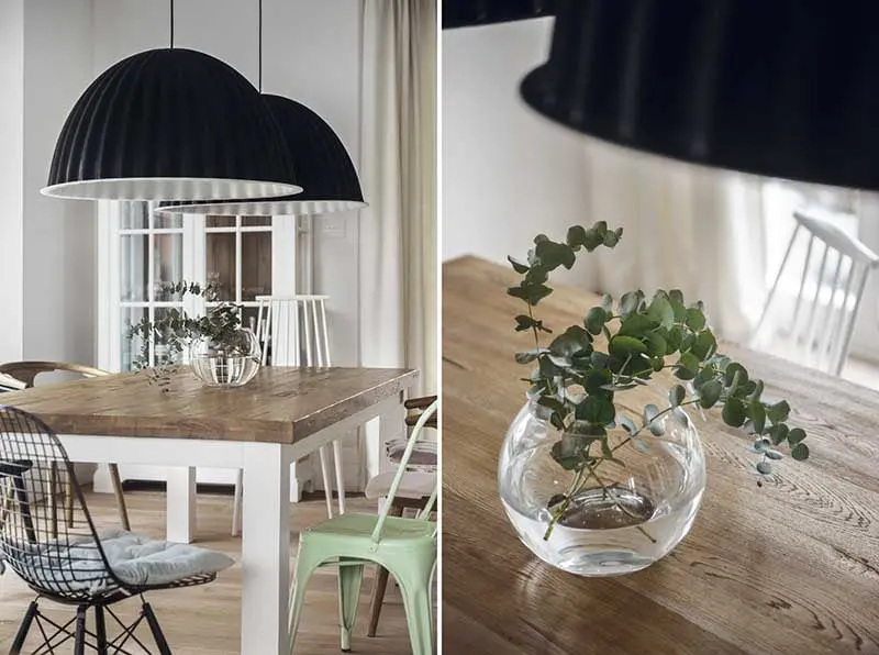 Warto również zwrócić uwagę na wykorzystane modele mebli. W jadalni pojawiły się różne krzesła, które udowadniają, że komplety są passé. Taki zabieg znacznie unowocześnia wnętrze oraz wprowadza do niego nutę świeżości i nonszalancji. W salonie pojawiły się stylowe sofy inspirowane kultowym modelem Chesterfield.