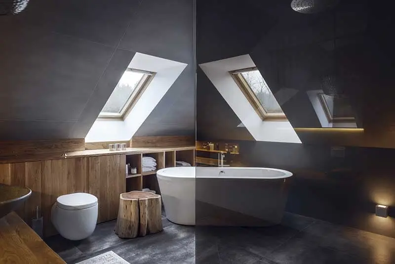 Na uwagę zasługują również łazienki urządzone w stylu spa. W obydwu pojawiły się drewniane elementy, które ocieplają wnętrze, a także wolno stojące wanny, dzięki którym możemy sobie zapewnić relaks na najwyższym poziomie.