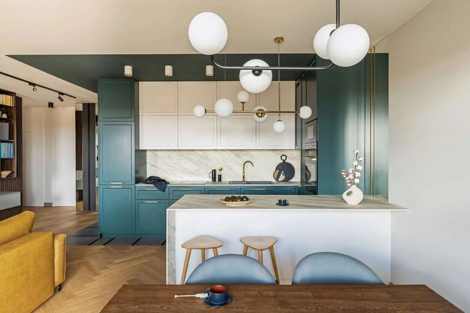 W eklektycznej przestrzeni powszechne są akcenty nasyconej kolorystyki, podobnie jak mieszanie i dopasowywanie różnych tekstur i wzorów.