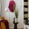 Salon utrzymano w duchu nowoczesnego eklektyzmu – geometryczne formy mebli i lamp współgrają z miękkimi tkaninami i ciepłymi tonami drewna. Na ścianach pojawiają się zdjęcia wykonane przez inwestorkę, a punktem kulminacyjnym stała się energetyczna, pomarańczowa sofa, która przykuwa wzrok już od pierwszych kroków w tej przestrzeni.