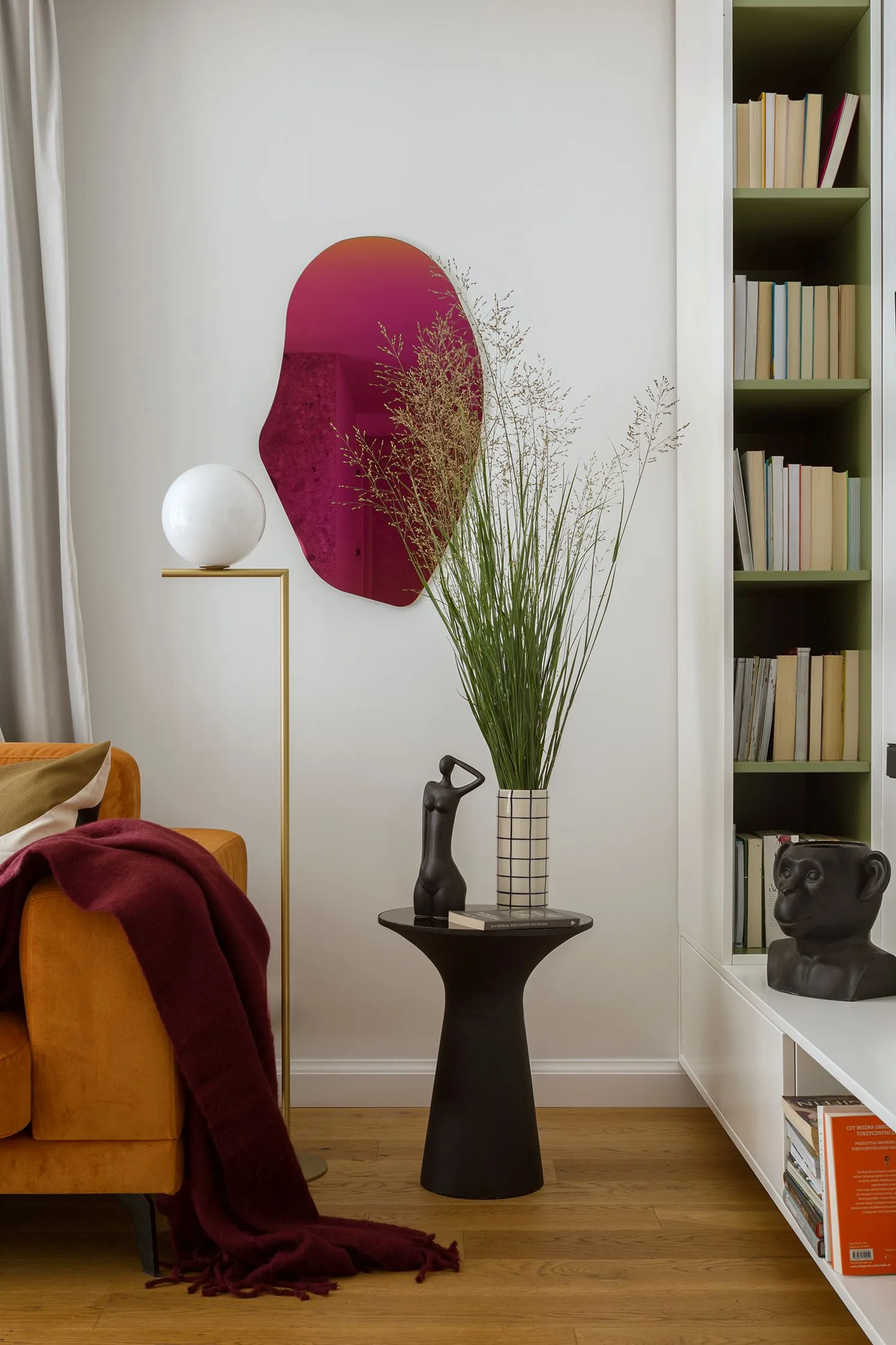 Na kameralnym osiedlu w Brwinowie, wśród majestatycznych dębów, powstało wnętrze, które trudno pomylić z jakimkolwiek innym. Projekt Katarzyny Sławińskiej z Tilla Architects to opowieść o kobiecie, która kocha psy, podróże i świat w pełnym spektrum barw. Choć mieszkanie ma zaledwie 47 metrów kwadratowych, jest przykładem, jak odwaga w łączeniu kolorów, form i detali może stworzyć przestrzeń nie tylko piękną, ale i niezwykle osobistą.