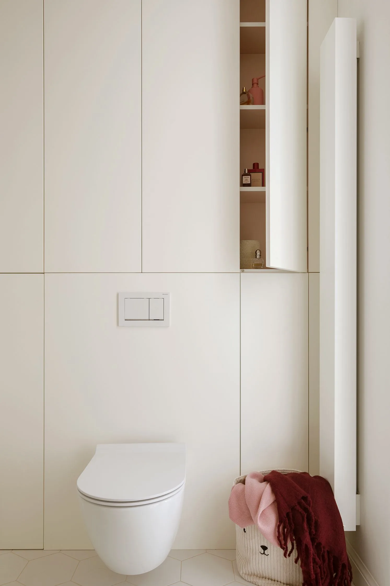 Katarzyna Sławińska z Tilla Architects znana jest z projektów, które łączą odwagę z ergonomią. Nie inaczej jest tutaj – każdy centymetr został zaplanowany z myślą o wygodzie użytkowniczki. Praktyczne schowki, przemyślane oświetlenie i wysokiej jakości materiały gwarantują trwałość, ale też poczucie komfortu.