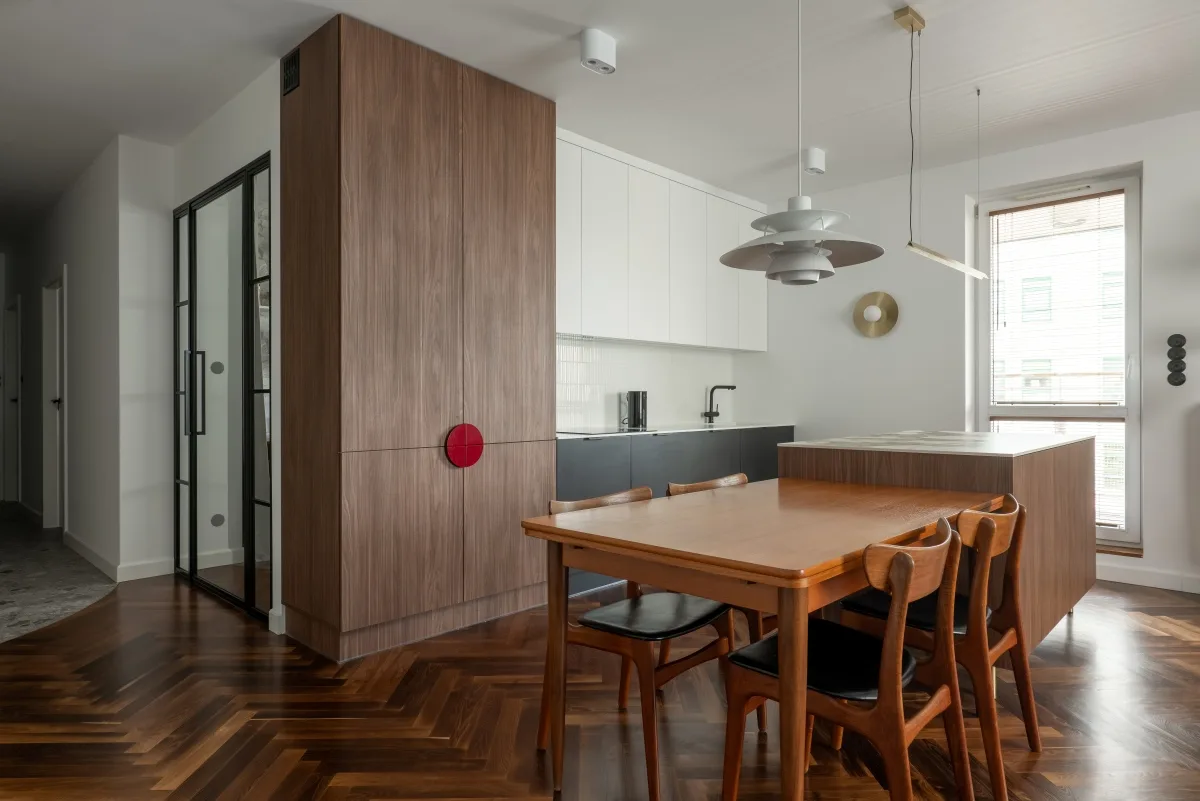 Jednym z kluczowych założeń projektu była optymalizacja przestrzeni. Dzięki przeprojektowaniu układu funkcjonalnego wnętrze stało się bardziej ergonomiczne i sprzyjające codziennemu życiu mieszkańców. Wprowadzenie lekkich konstrukcji i odpowiednich proporcji pozwoliło zachować wrażenie przestronności, nawet przy bogactwie detali.