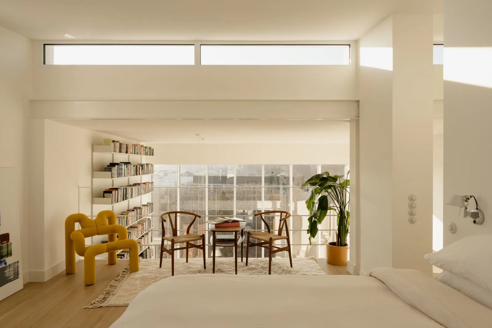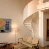 Projekt autorstwa Bogulski Studio to sztuka niedopowiedzeń – subtelne przejścia, przenikające się formy, powietrze, które swobodnie krąży między poziomami. Spiralne schody, niczym rzeźba unosząca się w powietrzu, łączą światy – codzienność i marzenie, intymność i otwartość.