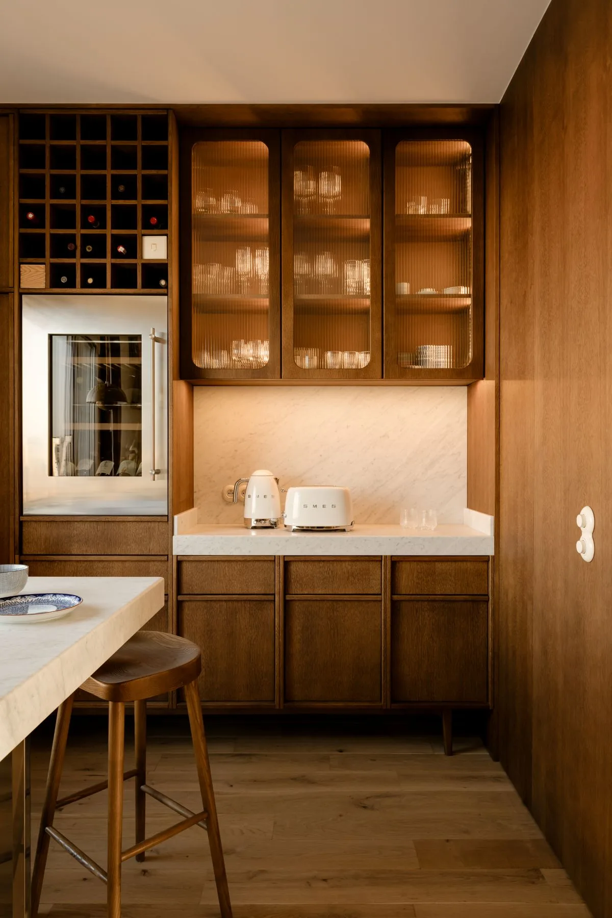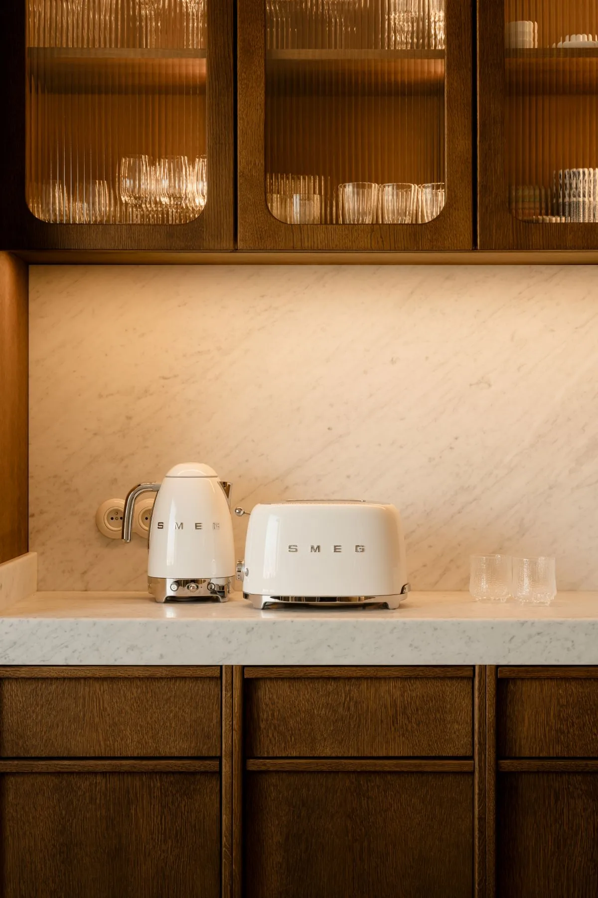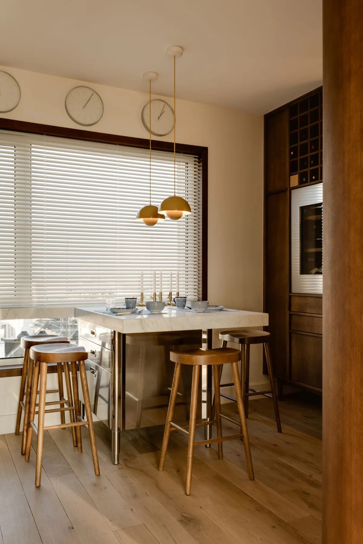 Tu drewno szepcze pod palcami swoją ciepłą historię, kamień opowiada o wieczności, a subtelny połysk mosiądzu dodaje wnętrzu szlachetnej głębi. Mateusz Bogulski i jego zespół pieczołowicie dobierali każdy materiał, każdą fakturę, tak jak artysta wybiera pociągnięcia pędzla, by stworzyć dzieło idealne w swojej prostocie.