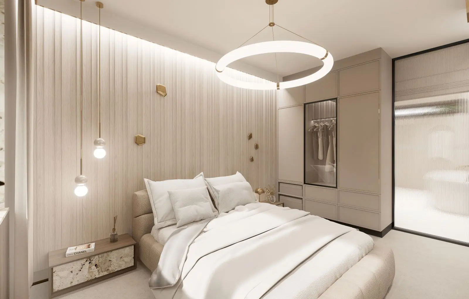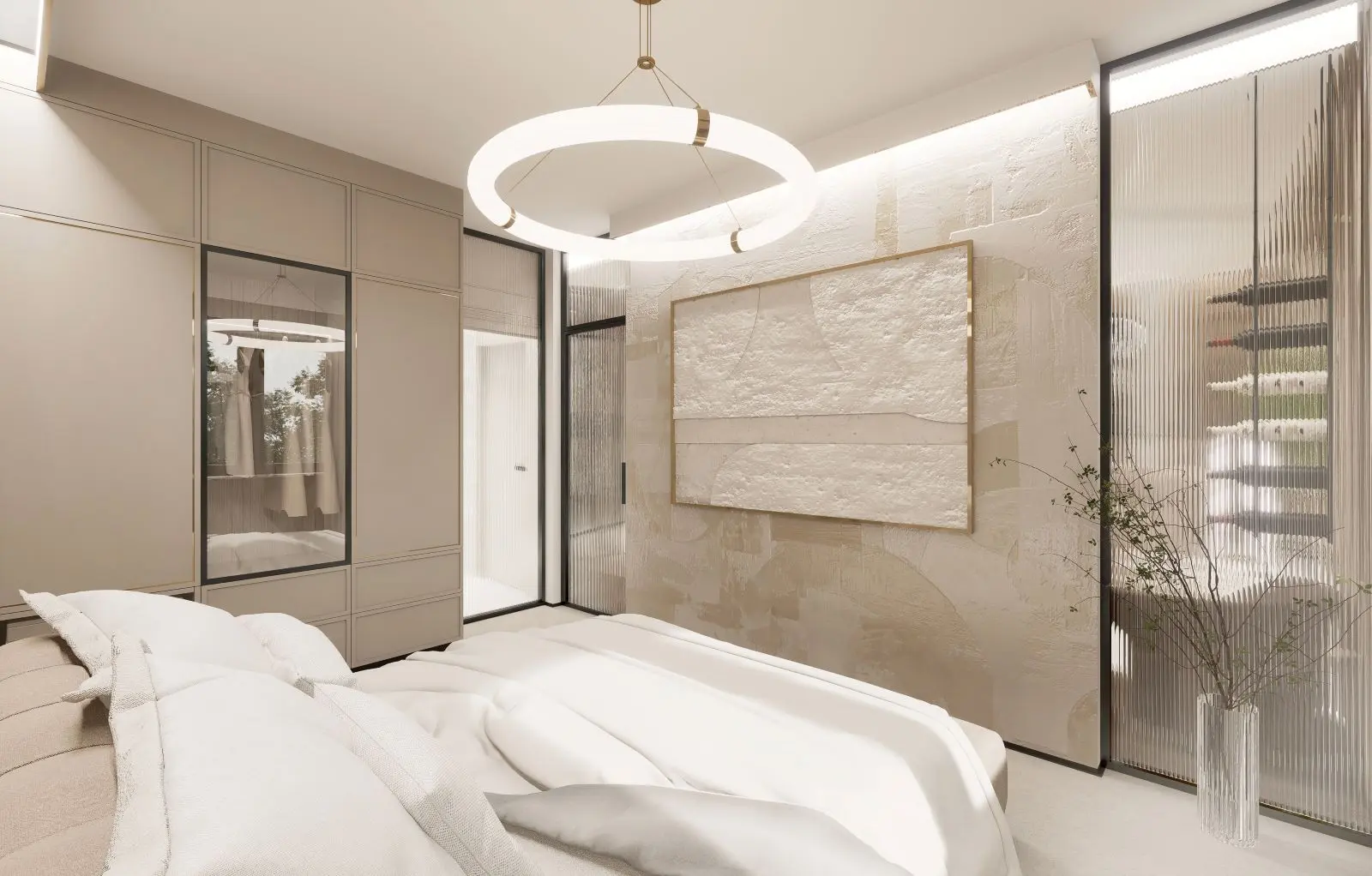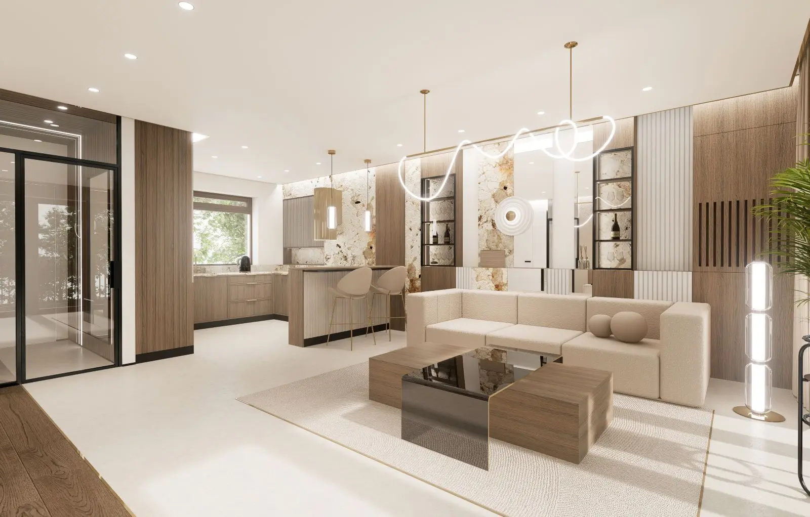 Wnętrze domu zaprojektowano z myślą o maksymalnym komforcie i funkcjonalności. Przestronne pokoje, otwarta przestrzeń kuchni połączonej z jadalnią i salonem, a także eleganckie, prywatne strefy takie jak gabinet czy sypialnie, wszystko zostało zaplanowane tak, aby wspierać naturalny przepływ i interakcje domowników.