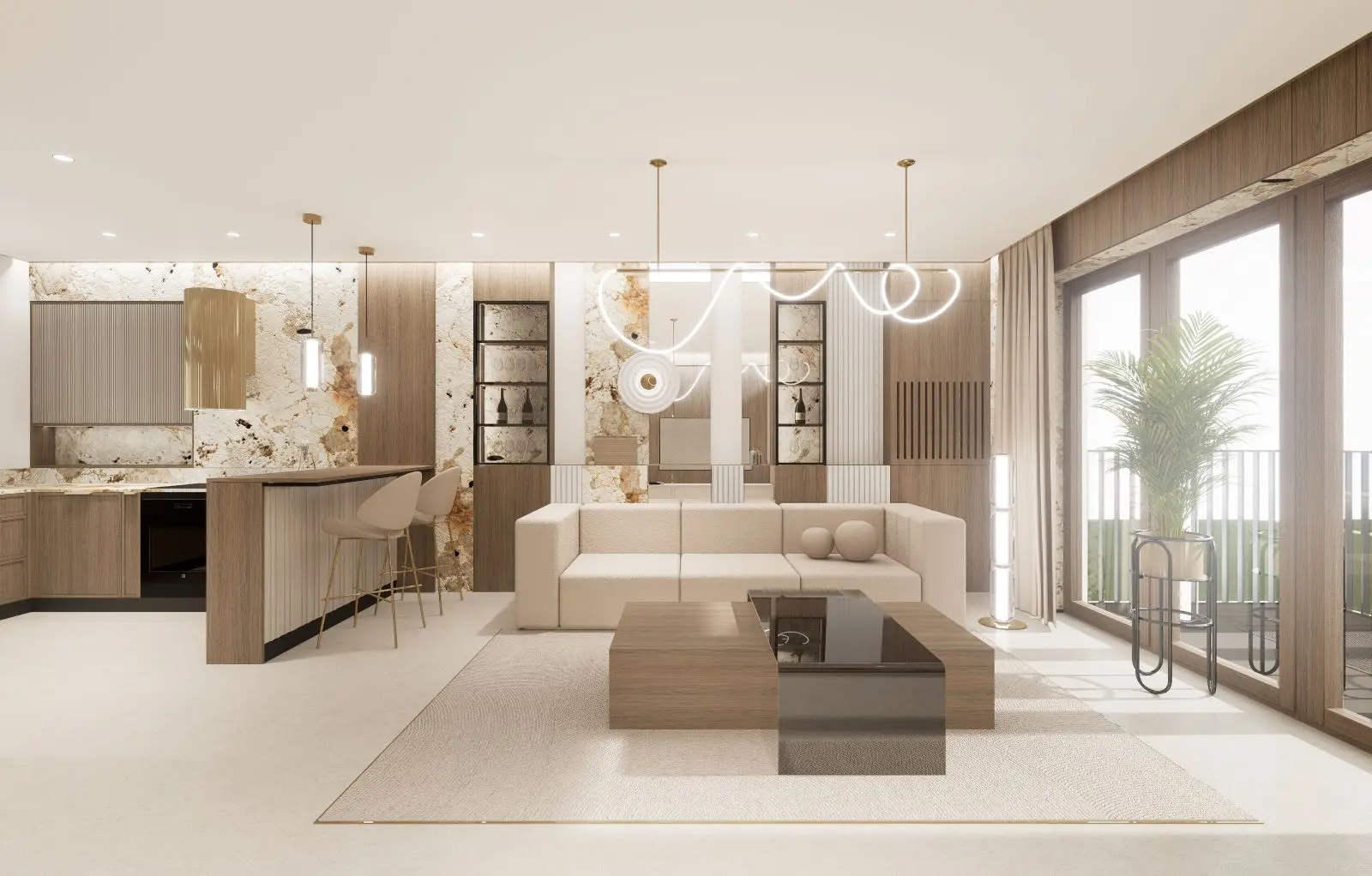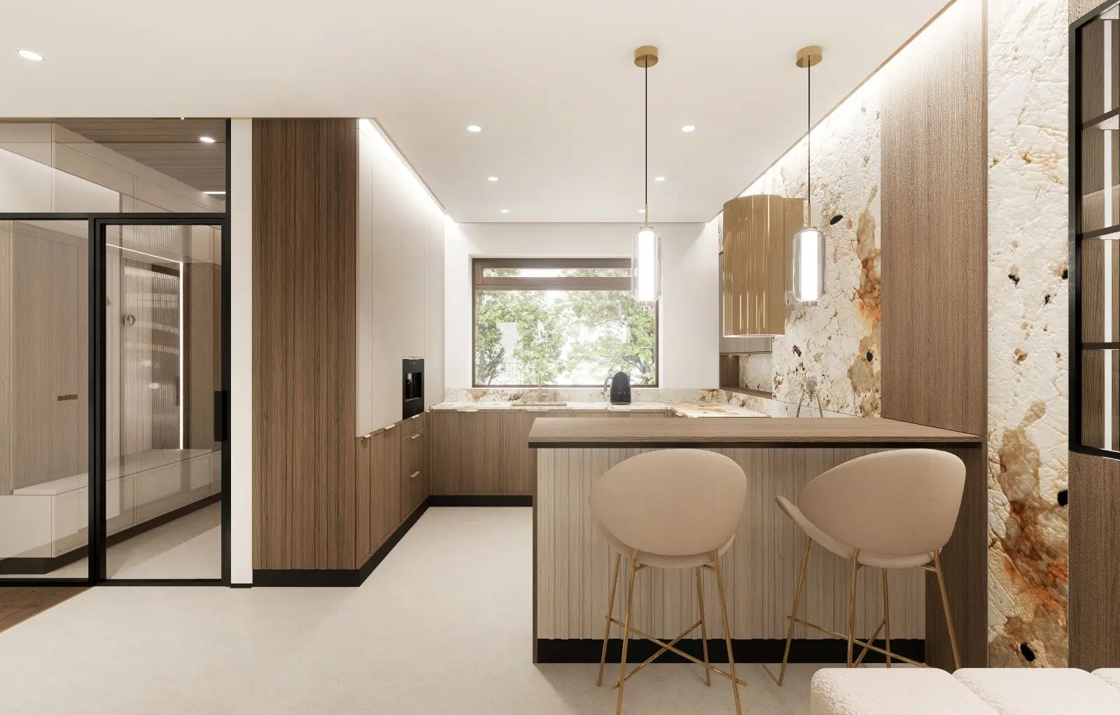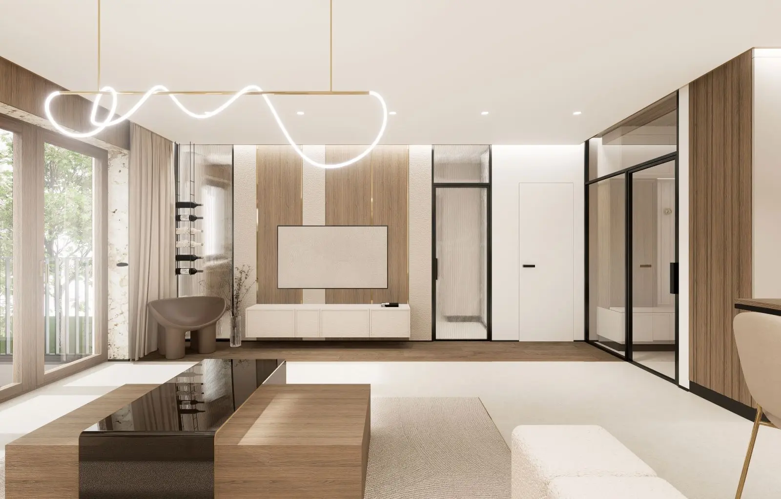 Wnętrze domu zaprojektowano z myślą o maksymalnym komforcie i funkcjonalności. Przestronne pokoje, otwarta przestrzeń kuchni połączonej z jadalnią i salonem, a także eleganckie, prywatne strefy takie jak gabinet czy sypialnie, wszystko zostało zaplanowane tak, aby wspierać naturalny przepływ i interakcje domowników.