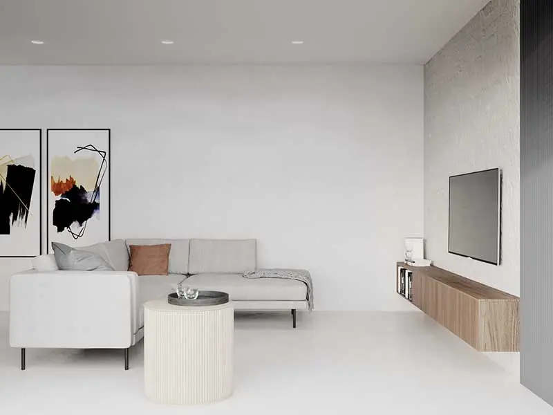 Wszystko to przełamane jest surowymi podłogą i ścianami, aby podkreślić znakomity projekt całego wnętrza.