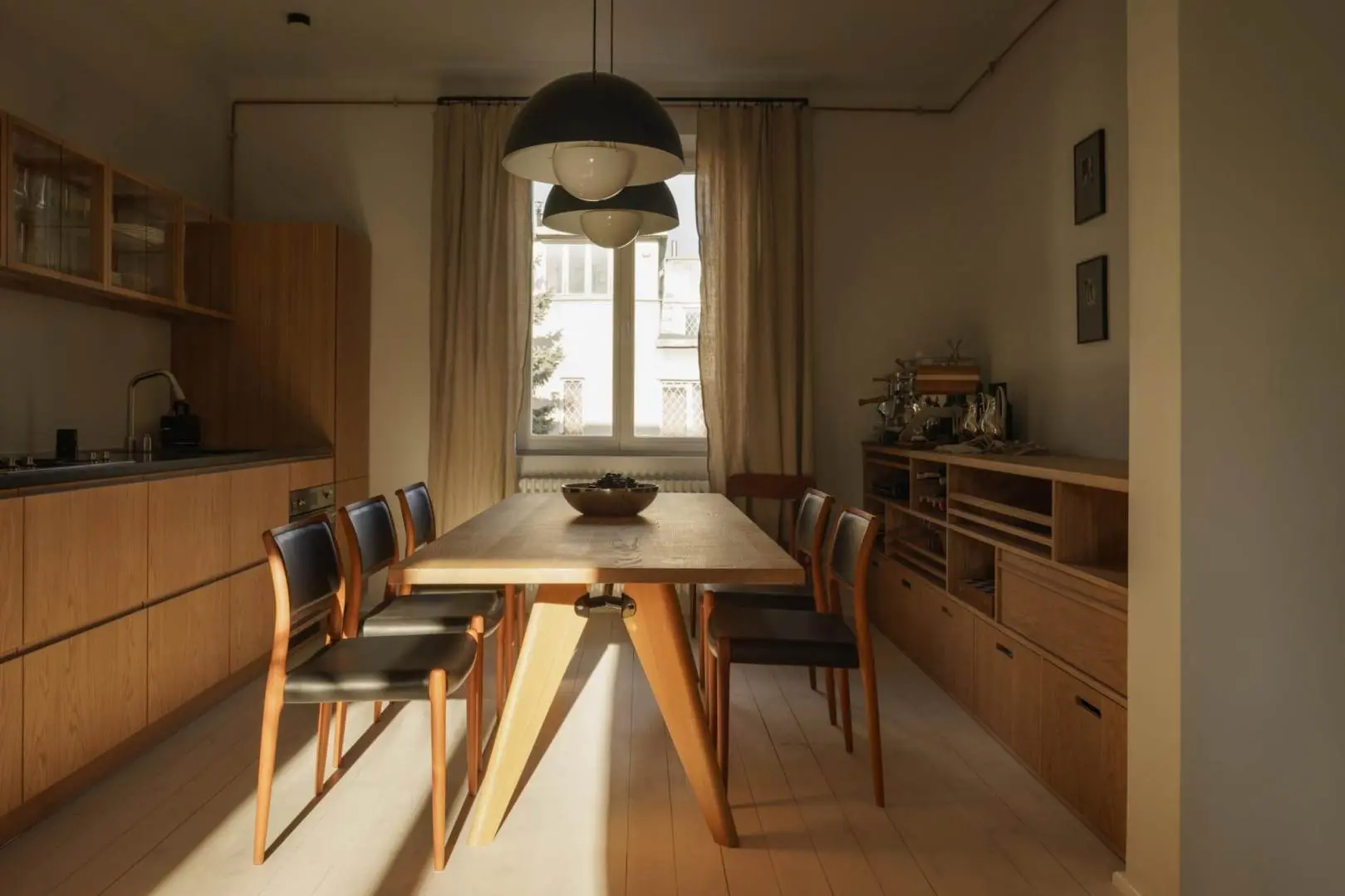Jak w każdym projekcie architekci z Loft Kolasiński podchodzą ze szczególną uwagą, aby zachować historyczny charakter miejsca oraz otwarcie przestrzeni. W mieszkaniu znajdują się też autorskie meble zaprojektowane przez architektów oraz lampy Brazilian Punk, jak również wiele klasycznych mebli i akcesoriów od artystów z całego świata. Ciekawostką są oryginale kasetony na ścianie w salonie, które zaprojektowali w 1972 roku czescy artyści Jaroslav Otruba i Jiří Rathouský, a oryginalnie zdobią one praskie ściany metra.