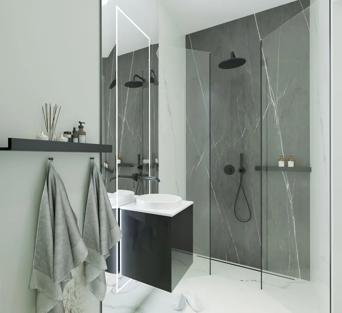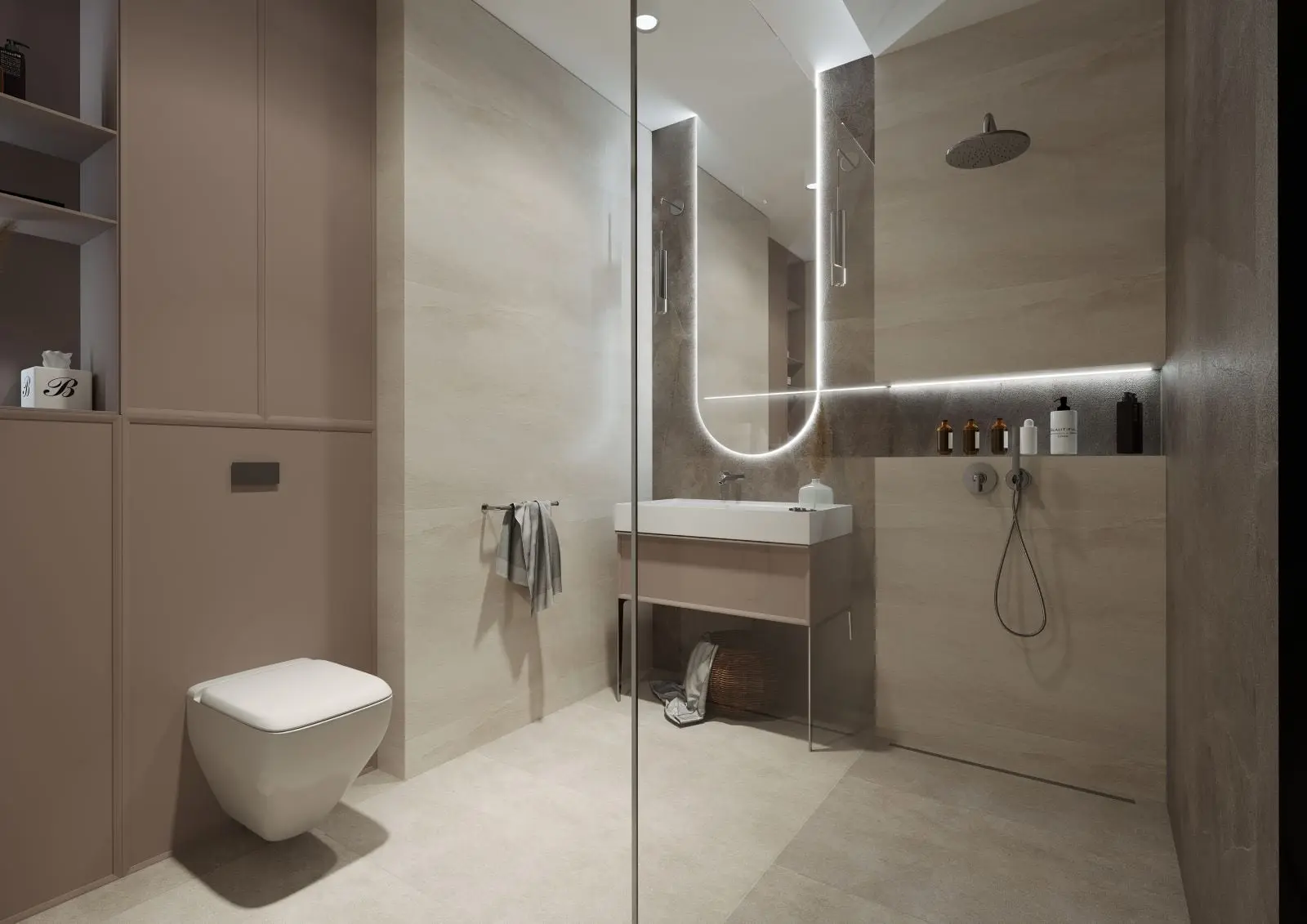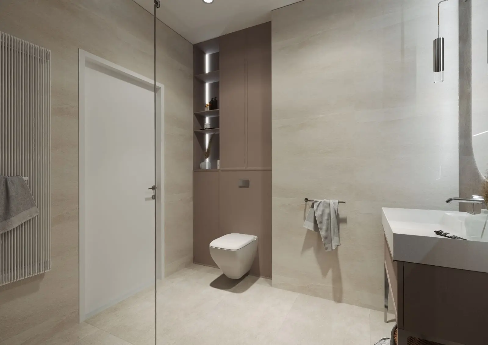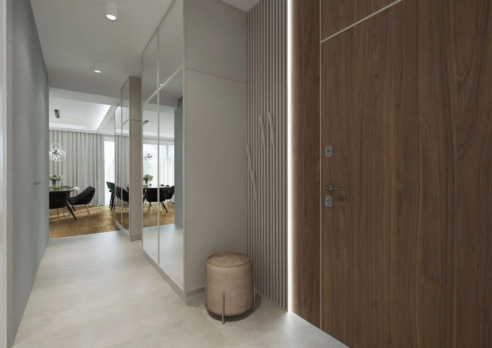 Wnętrze urządzone w stylu nowoczesnym klasycznym w jasnych tonacjach z dużą ilością szarości, beżu oraz z domieszką naturalnego drewna stwarza spokojną i elegancką atmosferę. To harmonijne połączenie nowoczesnych i klasycznych elementów, czyste linie, wysokiej jakości materiały oraz minimalistyczne podejście do dekoracji sprawiają, że przestrzeń ta emanuje stylem i wyrafinowaniem.