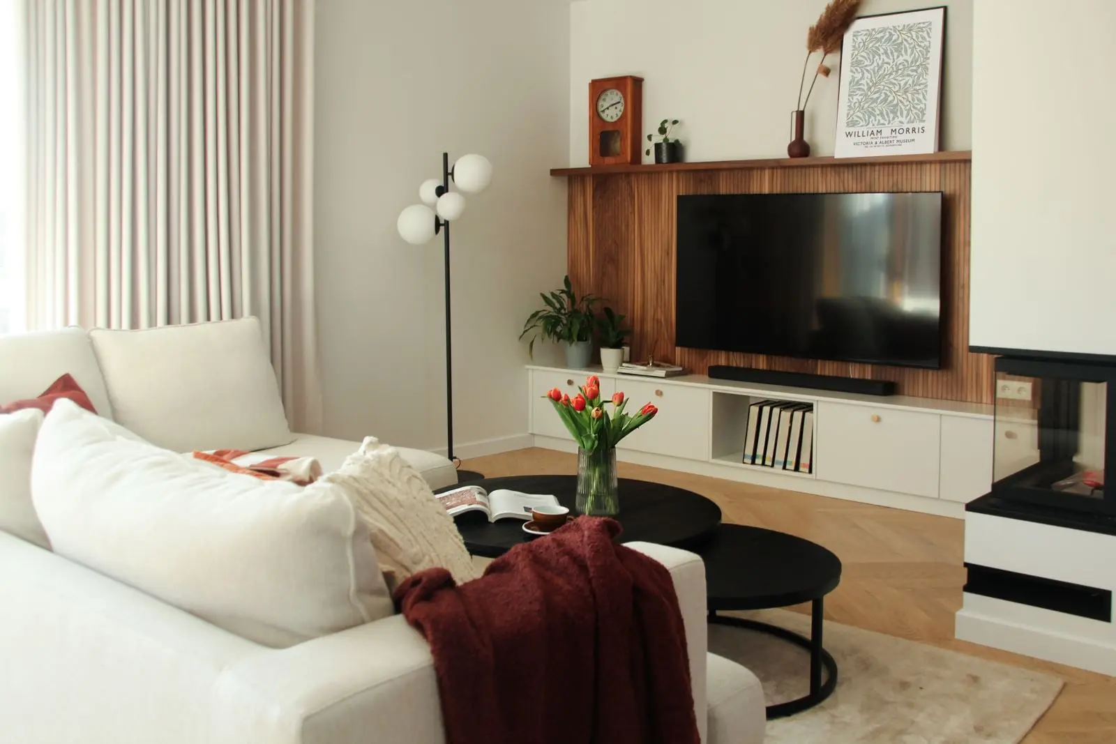 Jak sama architekt Paulina Bielaszka ACH!studio mówi o tym projekcie – Osobiście, bardzo lubię w tym projekcie grę zrównoważoną klasyką z mocniejszymi elementami wyróżniającymi wnętrze, w odpowiednich proporcjach, tworząc spójność i harmonię. Podoba mi się także delikatnie wyczuwalny „retro vibe” osiągnięty m.in. przez zestawienie nasyconego, orzechowego drewna o wyrazistym rysunku, z podłogą nawiązującą do naturalnego kamienia. (Fioranese, Frammenta) Ogromnie cieszę się również z faktu, że zawisł tu stworzony przez ACH!studio, specjalnie dla tego wnętrza, plakat z motywem gęsi! Najważniejszą jednak jest opinia i poczucie Klientów, że spełniło się ich wielkie marzenie o życiowej oazie, jaką stanowi zaprojektowany przez ACH! studio dom.