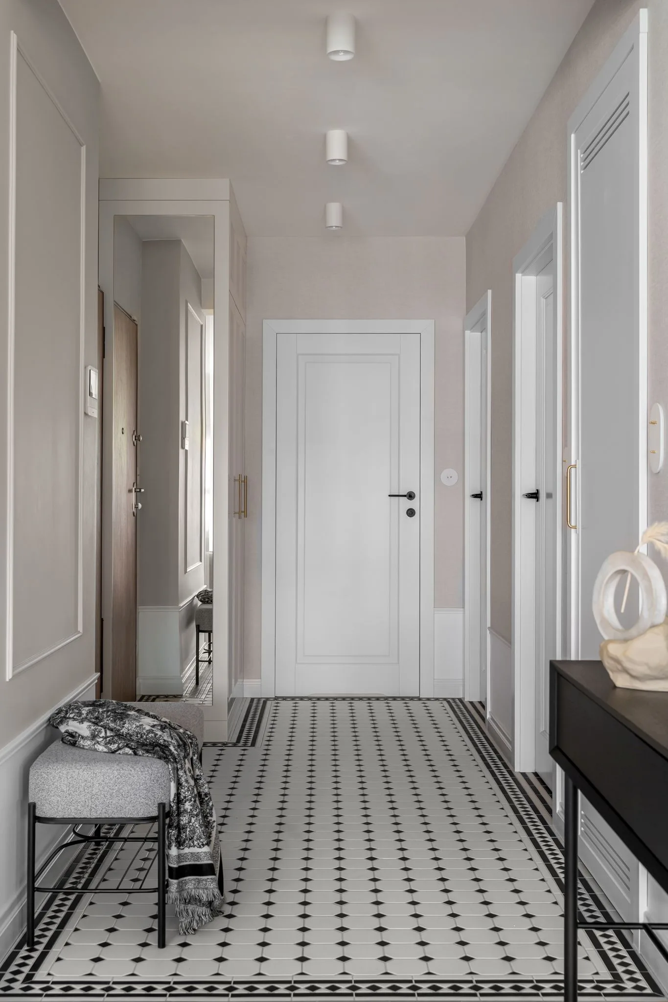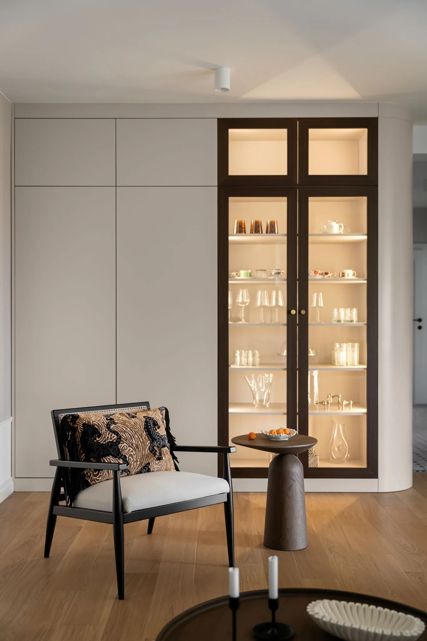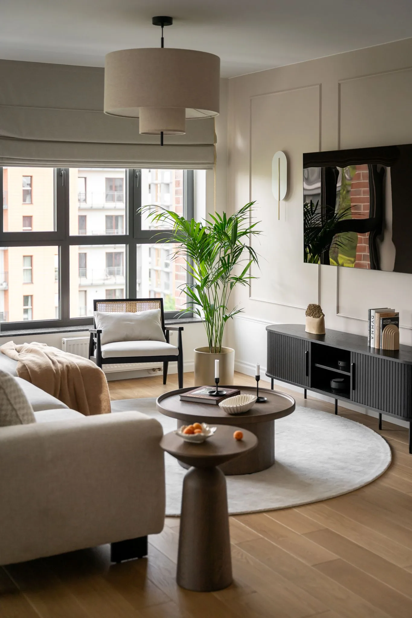 W 97-metrowym apartamencie projektantka Weronika Lesińska-Słupska mistrzowsko połączyła szlachetność klasyki ze świeżością współczesnych rozwiązań. Inspiracją do stworzenia wnętrza była idea trwałości wobec szybko przemijających trendów. W rezultacie powstała przestrzeń elegancka i wyważona, w której główną rolę grają wysokiej jakości materiały, subtelna kolorystyka oraz przemyślany układ funkcjonalny.