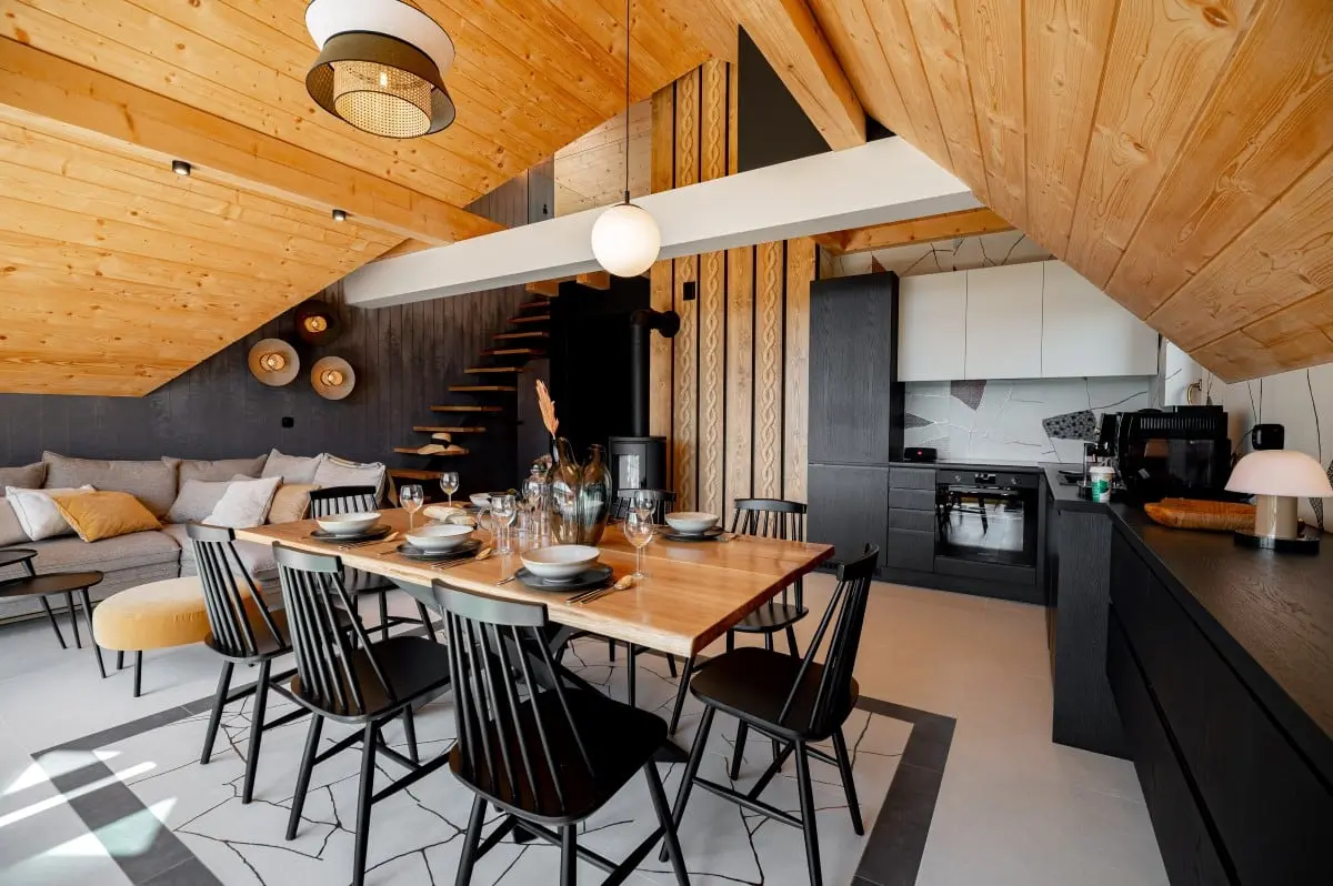 Niezwykle przytulny, pełen designerskich produktów od światowych marek, z pięknym widokiem na Jezioro Czorsztyńskie, domek na wynajem krótkoterminowy. Tak w największym skrócie moglibyśmy opisać zaprezentowany w dzisiejszym wpisie projekt, którego autorką jest Ewa Tarapata. Architektka, która wypracowała swój charakterystyczny styl, nie boi się odważnych zestawień. Z łatwością łączy ludowe rzemiosło ze światowym wzornictwem. Kocha drewno, nietuzinkowe płytki i ręcznie robione lampy francuskiej manufaktury Market Set. Efekt? Przestrzeń otulająca wszystkie zmysły, w której po prostu chce się być.