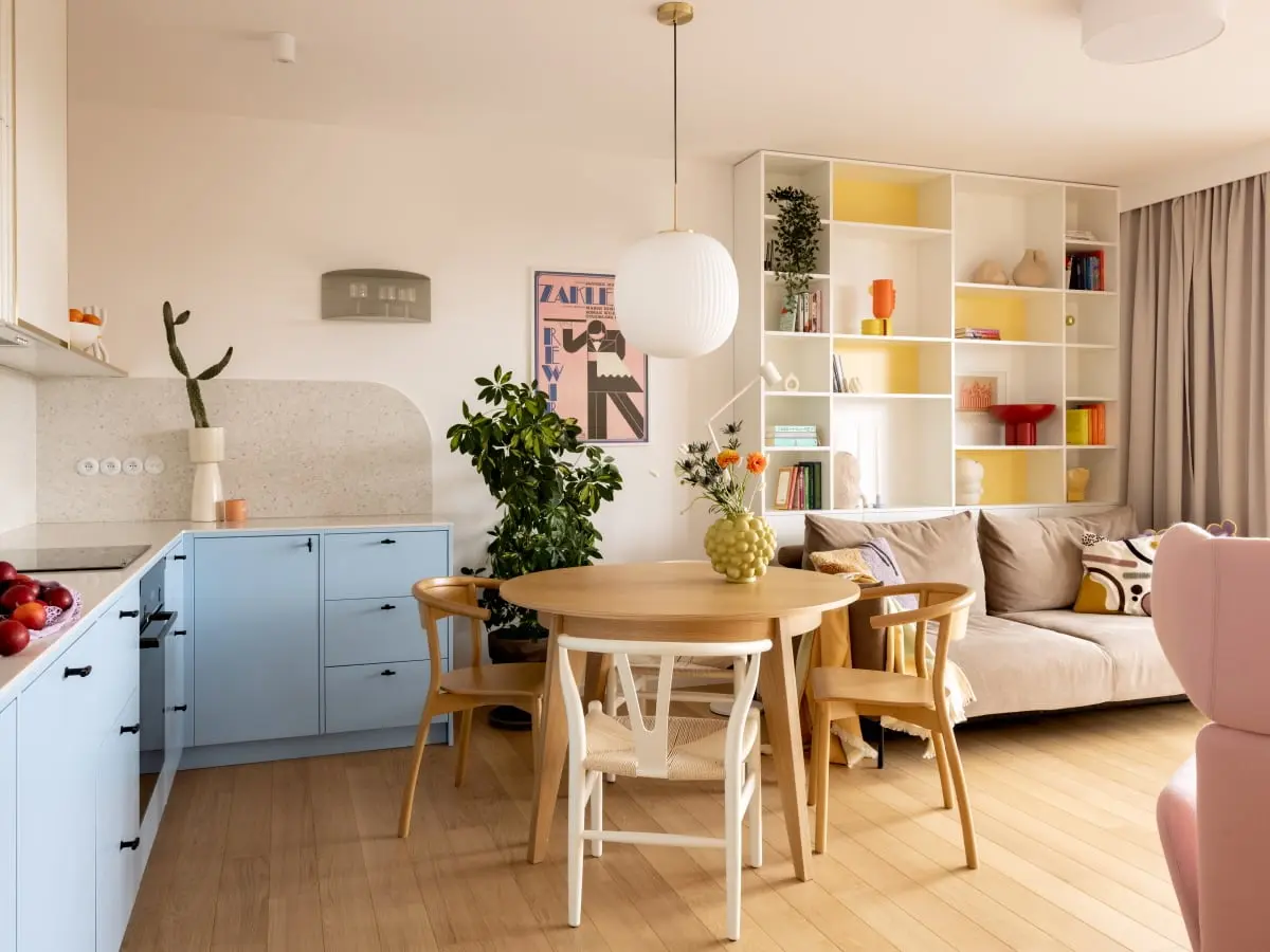 Hanna Brzozowska, prowadząca autorską pracownie Inbalance, świetnie czuje się w kolorowych klimatach. Jej znakiem firmowym jest umiejętność łączenia różnorodnych stylów, form, wzorów i faktur, które tworzą harmonijną przestrzeń mieszkalną. Najnowszy projekt architektki powstał dla trzyosobowej rodziny i ich kota. Słoneczne mieszkanie w Wołominie to wnętrze, którego nie da się zaszufladkować – zabawa kolorem, splata się tu z minimalistyczną bielą ścian, dodatkami vintage, drewnianą podłogą i geometrycznymi detalami. Projekt ten został stworzony dla barwnych i wyjątkowych ludzi, ceniących dobry design, wzornictwo i sztukę, a wnętrza te stanowią piękne tło dla ich codziennego życia.
