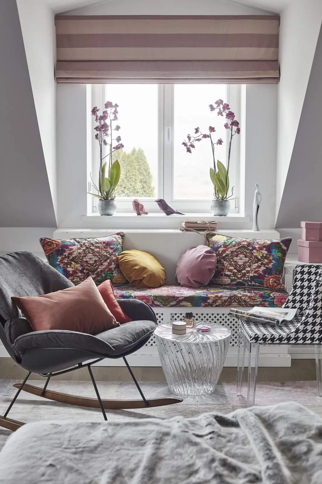 Przedstawiamy Wam projekt przebudowy i adaptacji wnętrza, które zostało bardzo konsekwentnie zrealizowane. Poddasze znajdujące się w warszawskiej kamienicy jest komfortowe, ale też bardzo kreatywnie wykończone. Projekt zawiera bardzo ciekawe połącznia stylów, kolorów i faktur. W mieszkaniu dopieszczony został każdy szczegół, a styl eklektyczny mamy możliwość zobaczyć w najlepszym wydaniu. Uwielbiamy wnętrza, które są nieoczywiste i zaskakują swoim wyglądem. Oprócz ciekawych połączeń i rozwiązań znajdują się tu również ikony designu jak np. krzesło w biało -czarną pepitkę Kartell Mademoiselle i stolik Sparkle.
