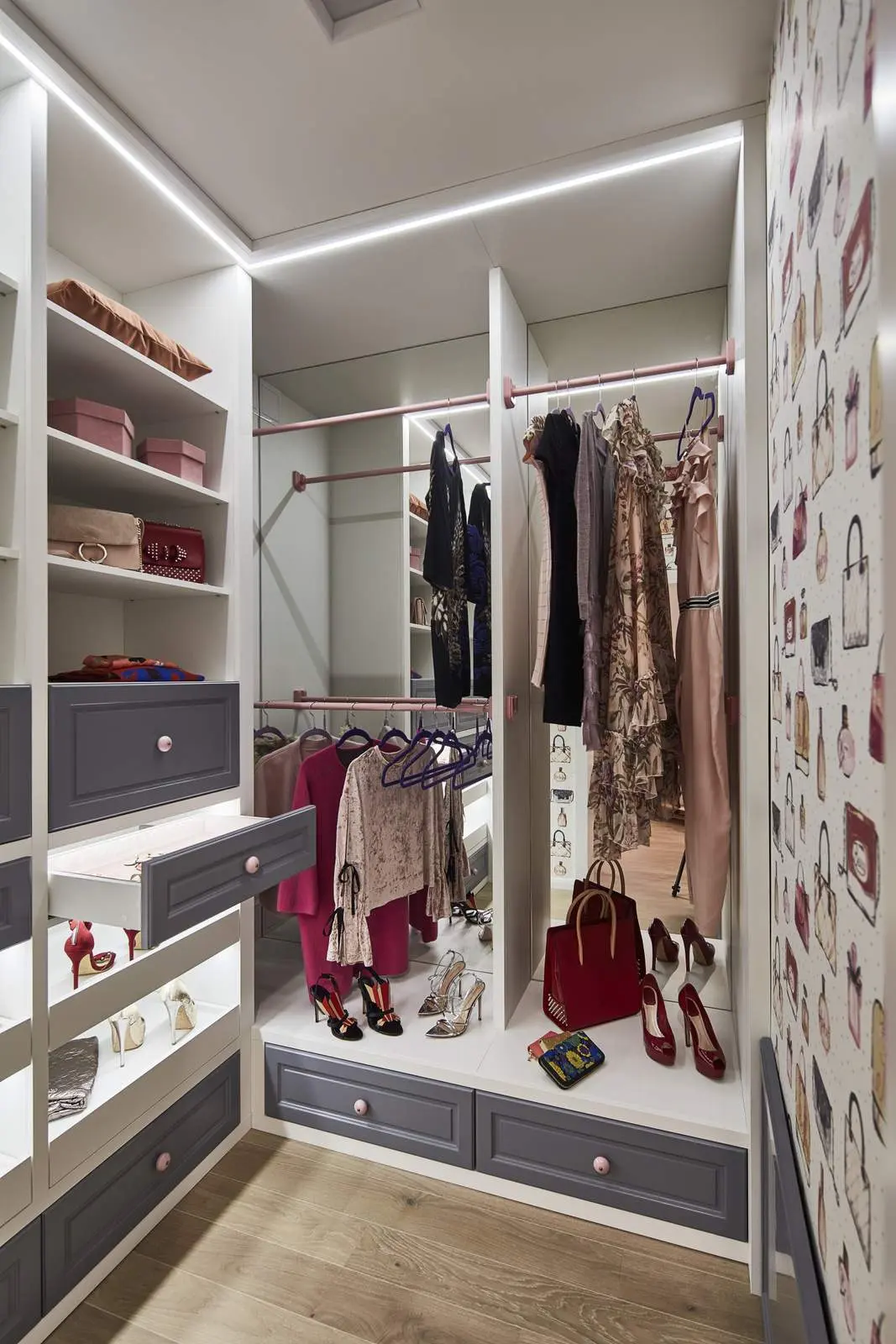 W stylowym i funkcjonalnym wnętrzu nie mogło zabraknąć garderoby, która jest kolorowa i dobrze oświetlona. Urządzając tą przestrzeń nie można zapomnieć o profesjonalnym podejściu do kwestii oświetlenia. Aby móc w pełni wykorzystywać możliwości, jakie daje nam dodatkowe pomieszczenie w domu, warto umieścić w nim odpowiednie lampy, a także właściwie oświetlone lustro. Ubrania i dodatki umieszcza się w garderobie, wykorzystując różne możliwości, np. takie, które stwarzają półki. W podobny sposób przechowuje się przeważnie buty. Aby móc z łatwością dostrzec odpowiednią parę, warto zdecydować się na montaż oczek stropowych, które skutecznie, a zarazem dyskretnie wydobędą z mroku poszukiwaną parę. Światło punktowe w garderobie wydaje się być czymś absolutnie niezbędnym.