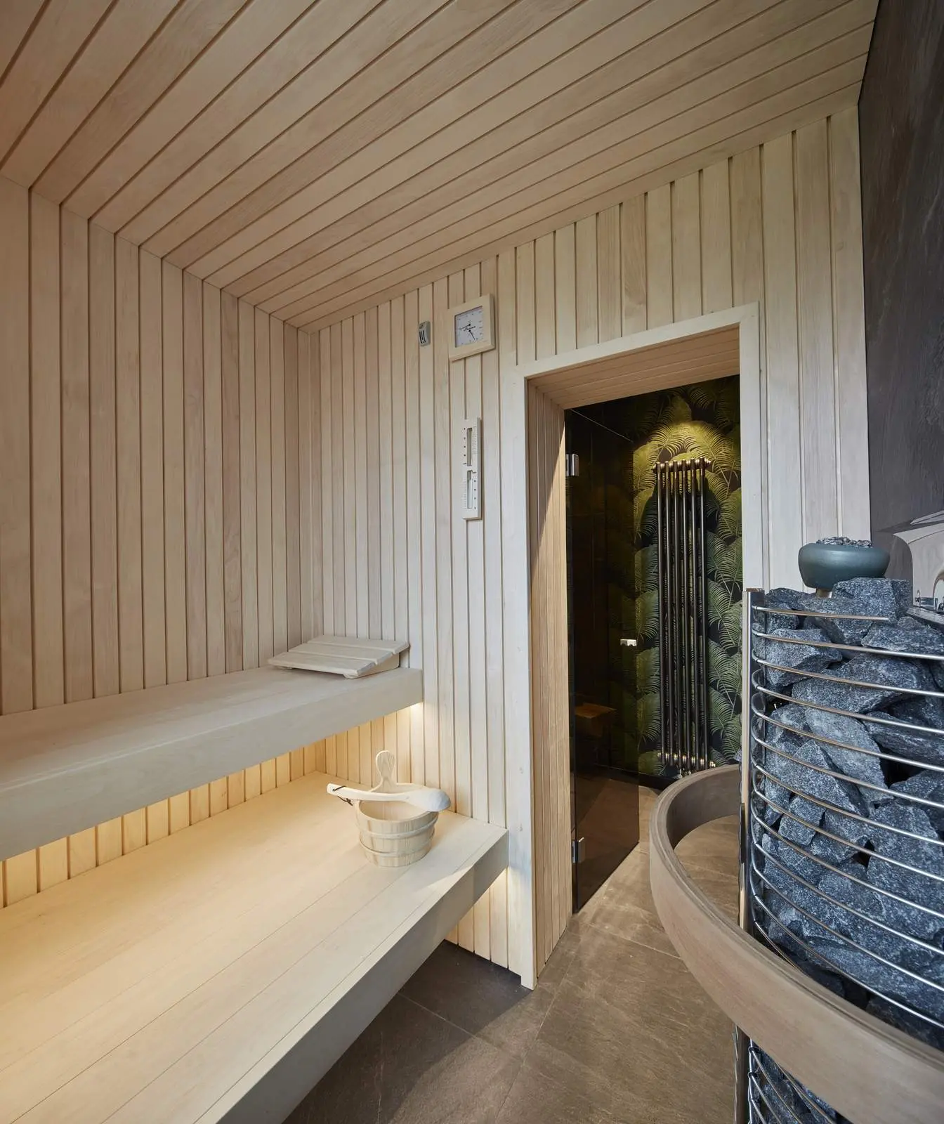W wyposażeniu łazienki zlokalizowanej przy sypialni znalazła miejsce saunę. Domowa sauna zapewnia nam oczyszczenie organizmu. Dlatego ważne jest, abyśmy dobrali rodzaj sauny do preferowanego przez nas stylu życia i wypoczynku. W dzisiejszych czasach jest dla nas ukojeniem i tak bardzo potrzebnym relaksem. Kąpiel parowa to czysta przyjemność, korzystamy więc z niej coraz częściej. Powoli zadomawia się w przestrzeni łazienkowej, a że ma zbawienne działanie na naszą kondycję – łączy przyjemne z pożytecznym. Nie da się zaprzeczyć, że poprawia odporność, oczyszcza organizm z toksyn i przynosi ulgę obolałym stawom i napiętym mięśniom. W stworzeniu takiego wnętrza pomogą nam architekci.