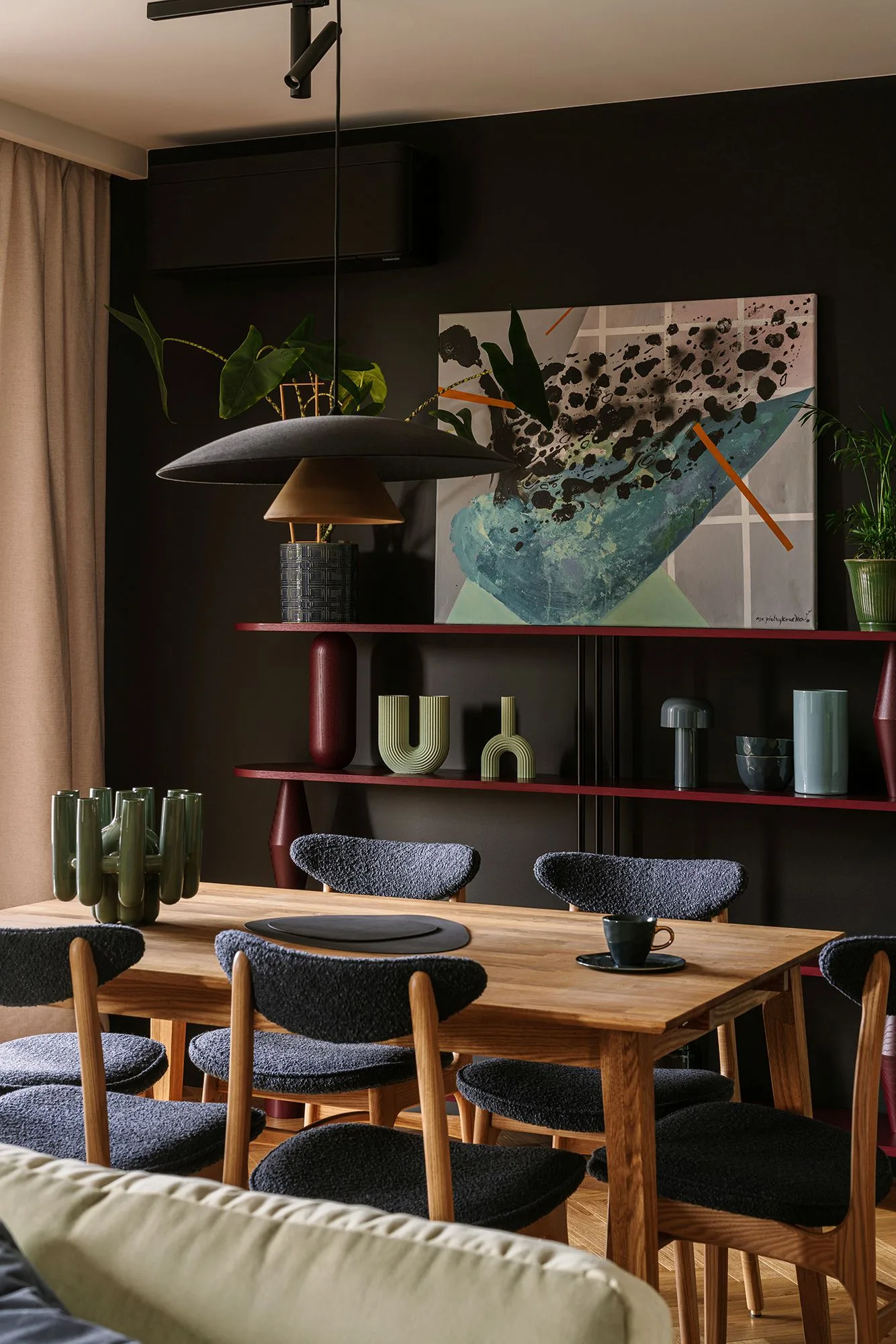 To nie jest wnętrze, które próbuje się przypodobać każdemu. To mieszkanie, które mówi własnym głosem. I mówi go głośno.