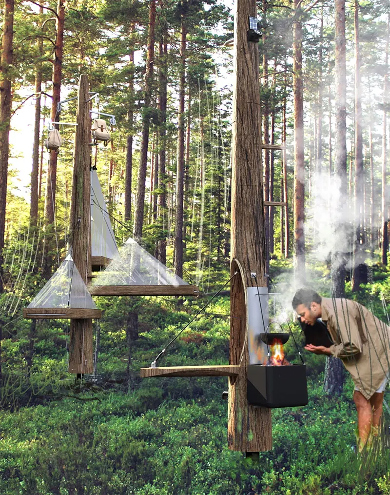 Projekt Human Forest to zupełnie nowa jakość spędzania czasu w lesie. Na koncept składają się 4 „konary”, które kolejno odpowiadają czterem funkcjonalnościom: