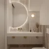 Również meble i zabudowy stałe zostały starannie przemyślane i ograniczone do minimum. Utrzymane w stonowanej kolorystyce, przyciągają wzrok swą łagodną, obłą formą i wysokiej jakości wykonaniem. Wygodna kanapa w salonie o płynnym, zaokrąglonym kształcie tapicerowana w jasnej, strukturalnej tkaninie, okrągłe pufy czy stoliki z litego drewna i kamienia o organicznej formie to elementy, które doskonale wpisują się w estetykę quiet luxury. Ważne są także detale – dyskretne uchwyty, perfekcyjnie wykonane szwy czy subtelne przeszycia. Wnętrza ożywiają miękkie, ciepłe światła, które tworzą nastrojowy klimat.