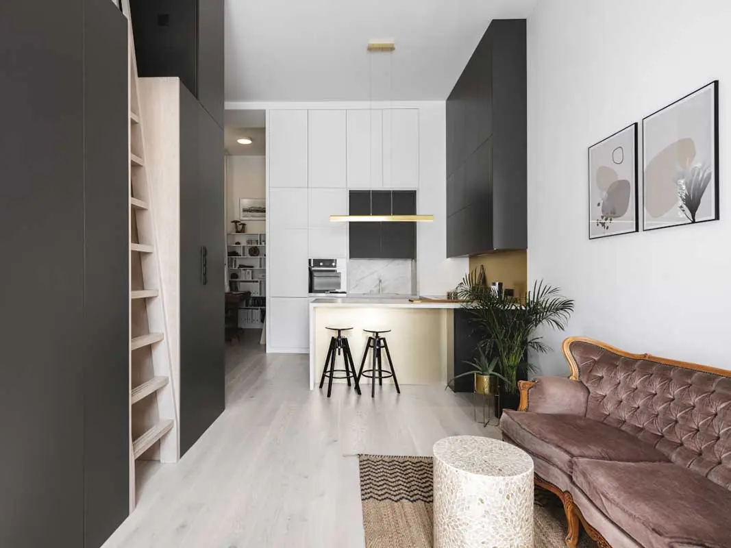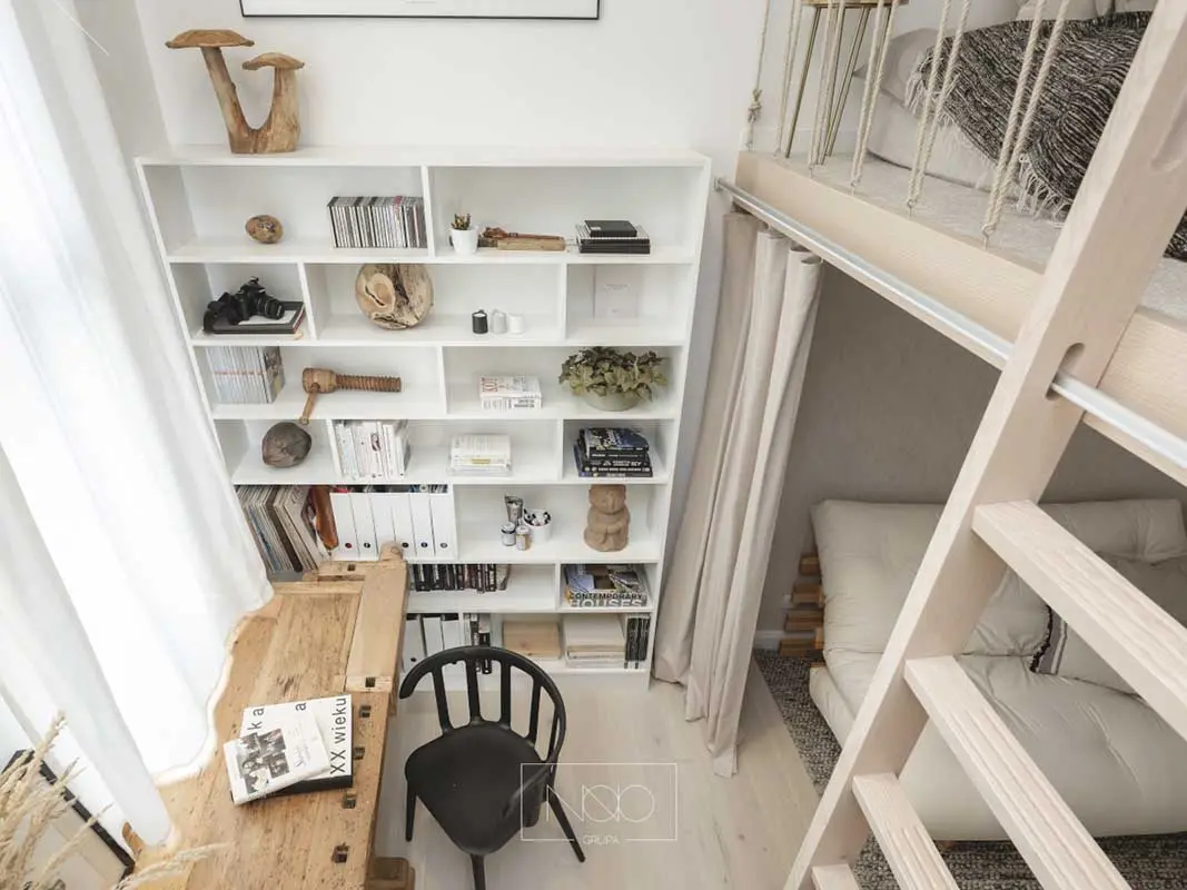 Dzięki imponującej wysokości mieszkania, która – nie da się ukryć – była ogromnym wyzwaniem projektowym, Karolinie autentycznie udało się powiększyć metraż mieszkania. Obecne tu dwie antresole, z czego jedna stanowi sypialnię, druga garderobę, sprawiły że mieszkanie zyskało aż 11, 5 m2.