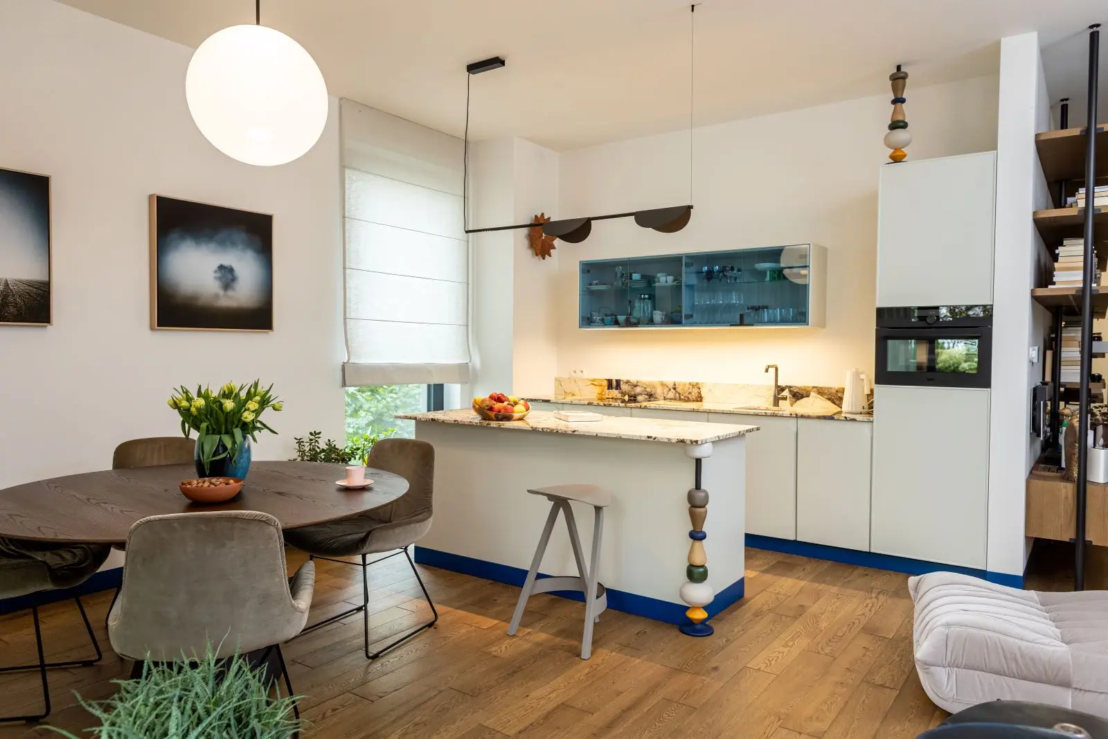 Projektowanie mebli, takich jak kuchnia, szafy, czy nawet tapicerowane łóżko, to obszar, gdzie talent Anny Czajkowskiej wyjątkowo błyszczy. Jej podejście do projektowania, uwzględniające indywidualne potrzeby klienta, sprawiło, że każdy element wnętrza jest idealnie dopasowany do oczekiwań i gustu właścicielki. Na ścianach wiszą prace polskich artystów w tym Pawła Żaka.