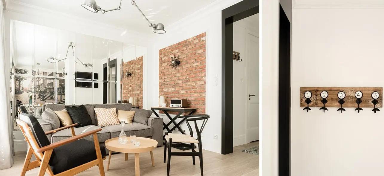 Aranżacja mieszkania, w którym znalazło się miejsce na ciekawe połączenie form inspirowanych epoką PRL – u z ważnymi w świecie designu modelami mebli, na przykład krzesłem Wishbone.