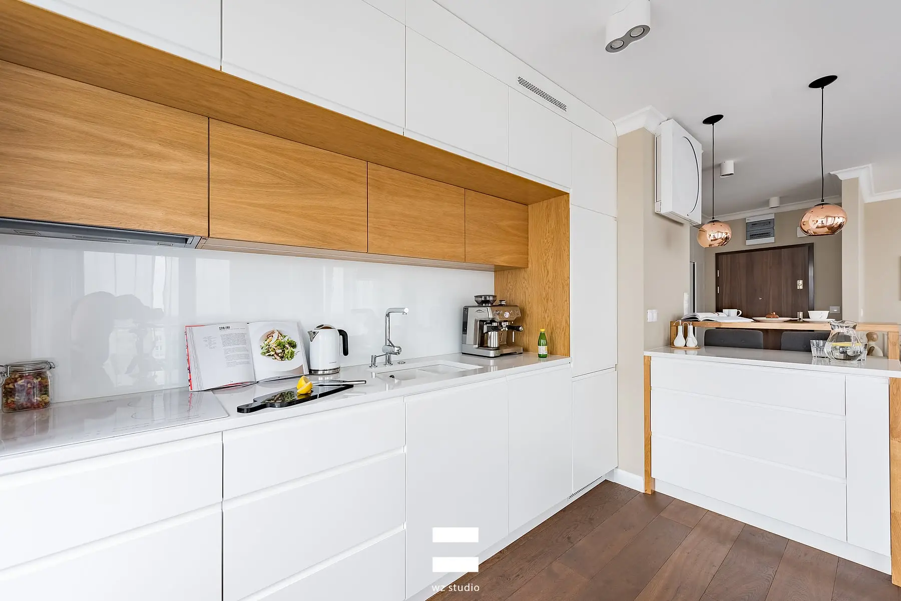 Projekt mieszkania w Lublinie to idealny przykład w jak doskonały sposób można połączyć dwa style. Jadalnia, sypialnia i sofa to wyraźna nuta Prowansji, natomiast kuchnia, przedpokój i łazienka to przytulny styl nowoczesny. W całym mieszkaniu widoczna tak modna w tym sezonie sztukateria. W łazience pięknie komponują się surowe płytki, niczym nieregularne głazy ze ścianą wertykalną i drewnianymi dodatkami. Całość mieszkania to wnętrze ponadczasowe, stonowane, funkcjonalne i idealnego dla rodziny.