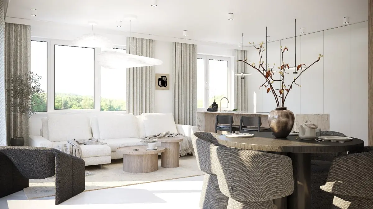 Opowieść o prostocie i przemijaniu rzeczy w apartamencie w stylu japandi