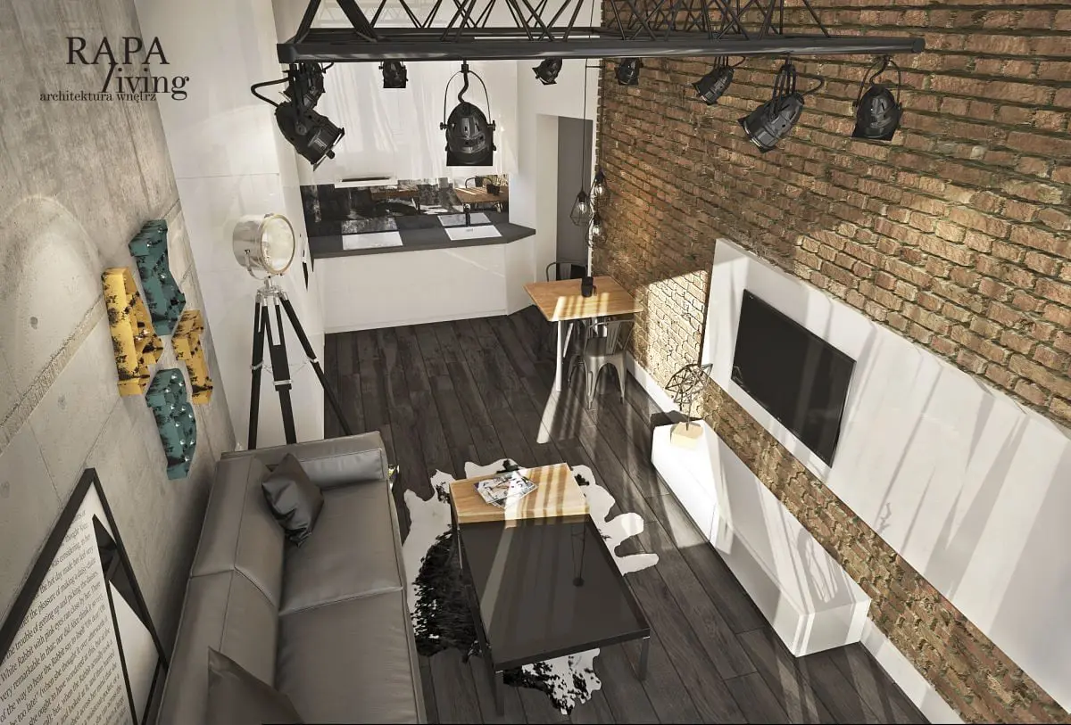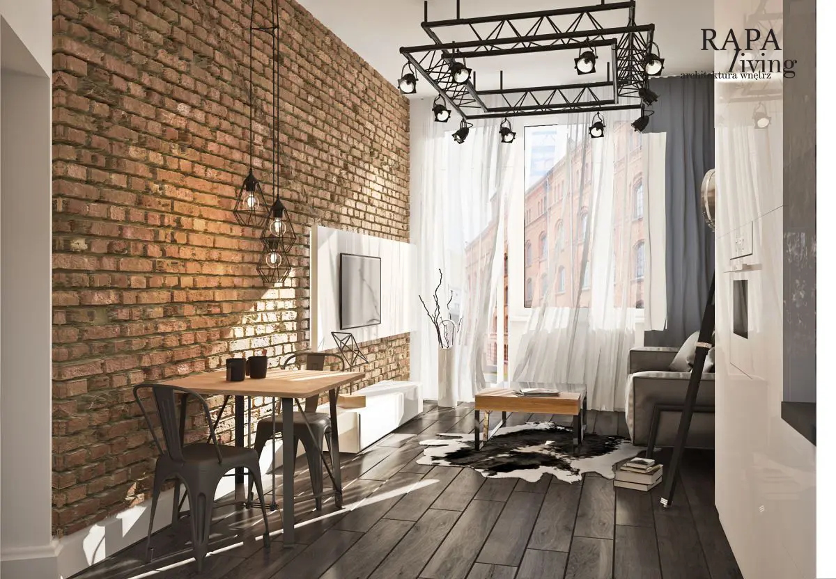 Projekt przeznaczony był dla młodych ludzi, którzy kupili mieszkanie w wyremontowanej ceglanej kamienicy. Wnętrza miały być praktyczne, ale z pazurem i nie mogły zaburzać charakteru kamienicy