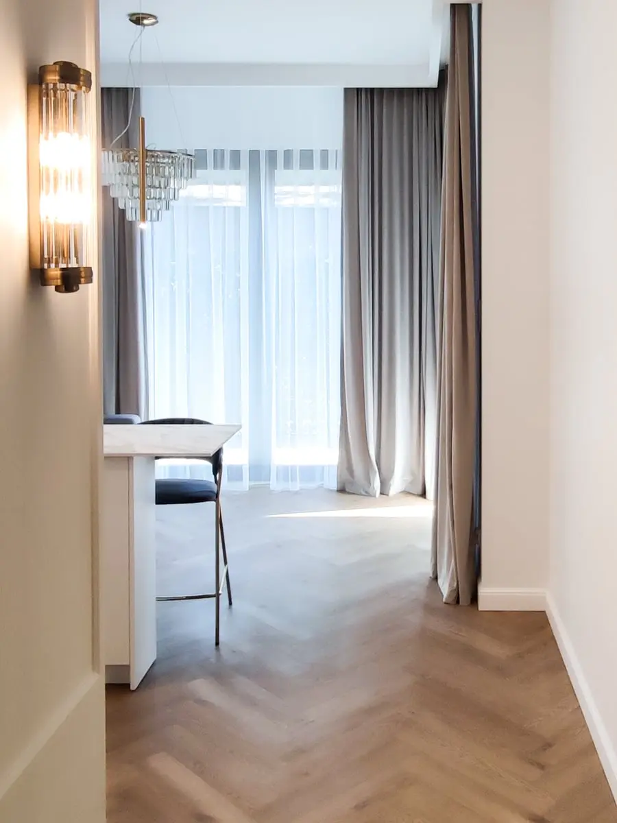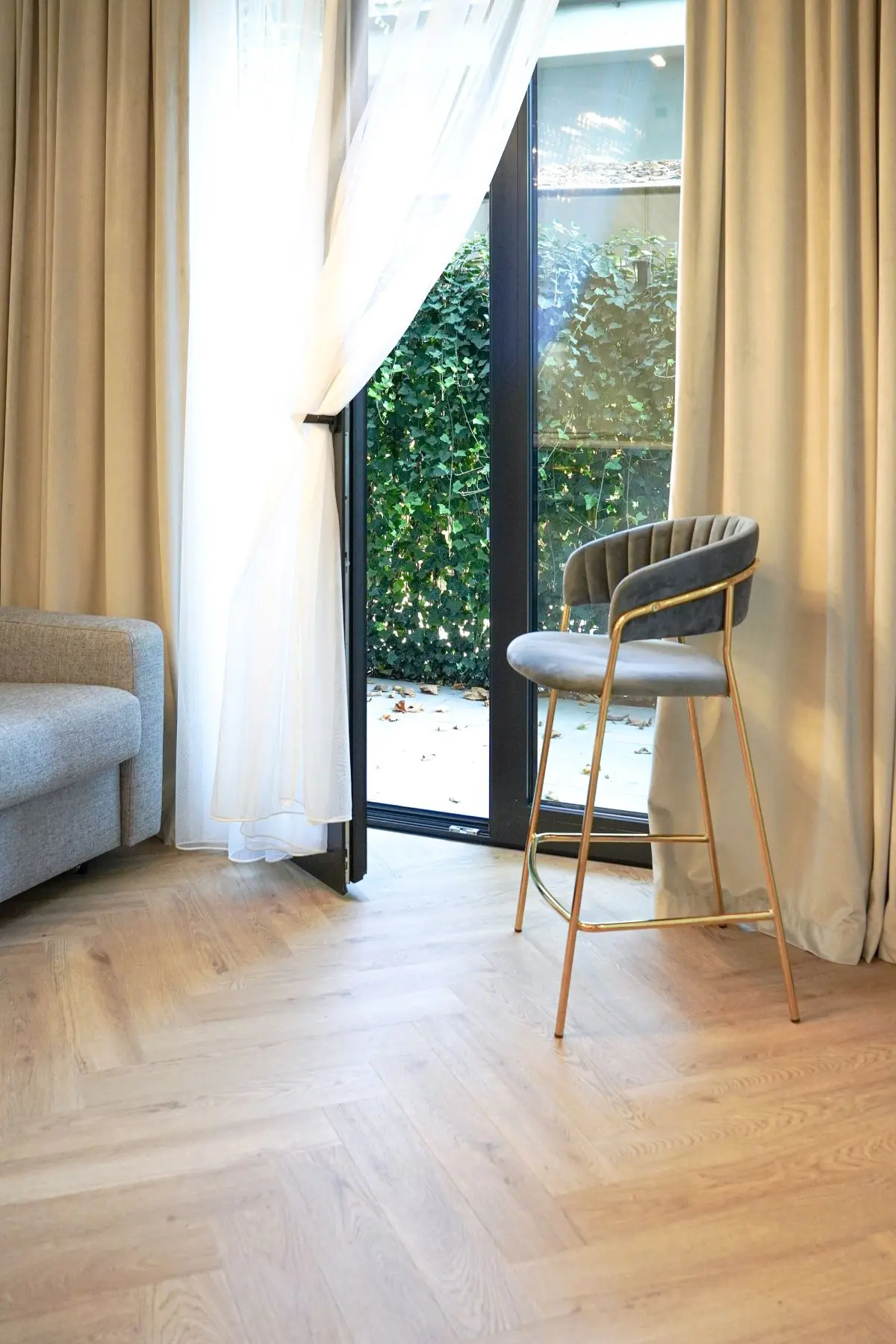 W cały mieszkaniu na podłodze znajdują się panele winylowe Charme Parquet. Jodełka świetnie wygląda w każdej aranżacji ponieważ dodaje ponadczasowości. Możemy śmiało powiedzieć, że wzór w jodełkę świetnie sprawdzi się w niemal każdym wnętrzu. Poznając zalety paneli winylowych nie wyobrażamy sobie, aby na podłodze znalazł się inny materiał, a dotychczas jodełka była raczej zarezerwowana dla użytkowników podłóg drewnianych. Na szczęście producenci postanowili odpowiedzieć na potrzeby klientów i obecnie można kupić panele przystosowane do układania w jodełkę CHARME PARQUET X LUXURY VINYL.